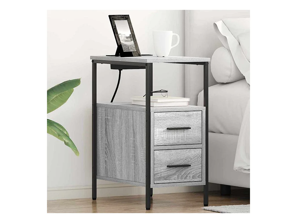 Mesa de Noche | Mesa auxiliar con cajón 2 uds. Gris sonoma 30x48x61 cm