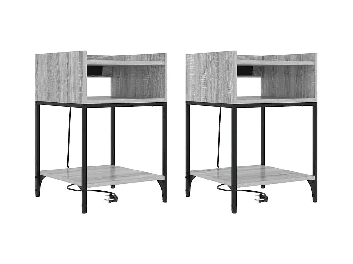 Mesita de noche | Mesilla de noche 2 uds. madera ingeniería gris Sonoma 40x40x55 cm
