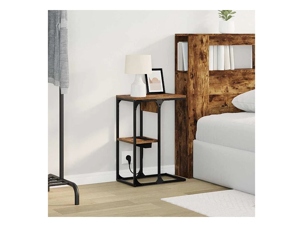 Mesa de Noche | Mesa auxiliar | Mesita de noche Roble ahumado 41.5x26x60.5 cm