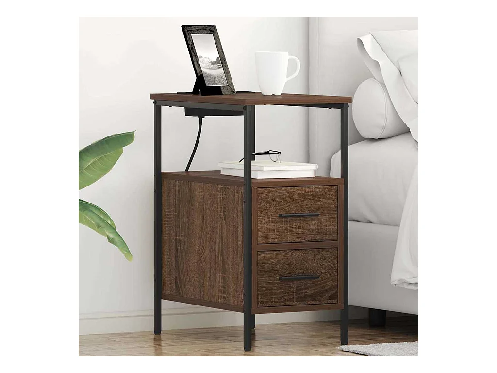 Mesa de Noche | Mesita de noche Marrón roble 30x48x61 cm Madera contrachapada