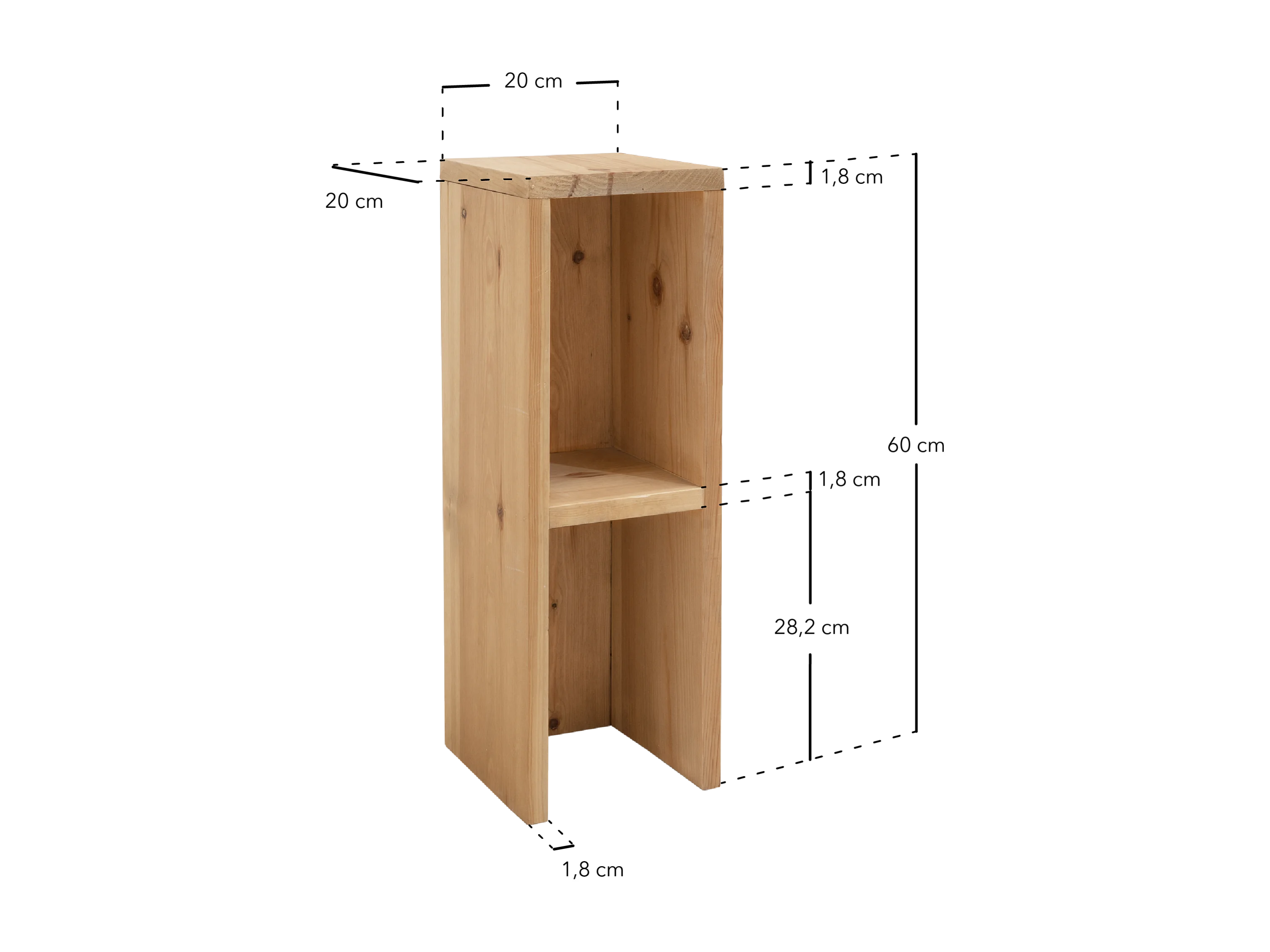 Mesa de noche o auxiliar de madera de abeto Decowood con balda en color roble oscuro de 60x20cm - LINA - DECOWOOD