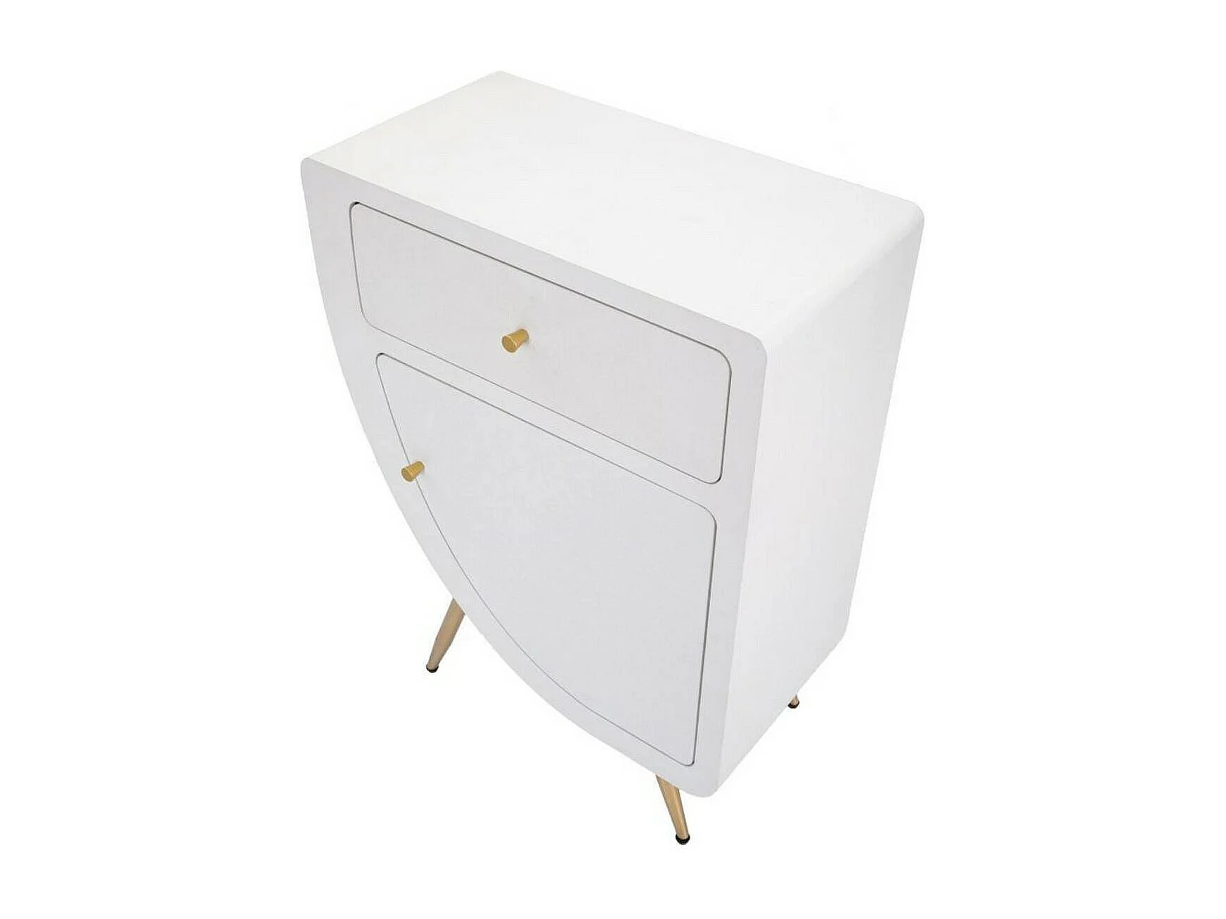 Mesa de noche Suze, Cómoda baja, Mesilla de noche, Estante de la cama, Blanco y Oro, 60x32 h79 cm