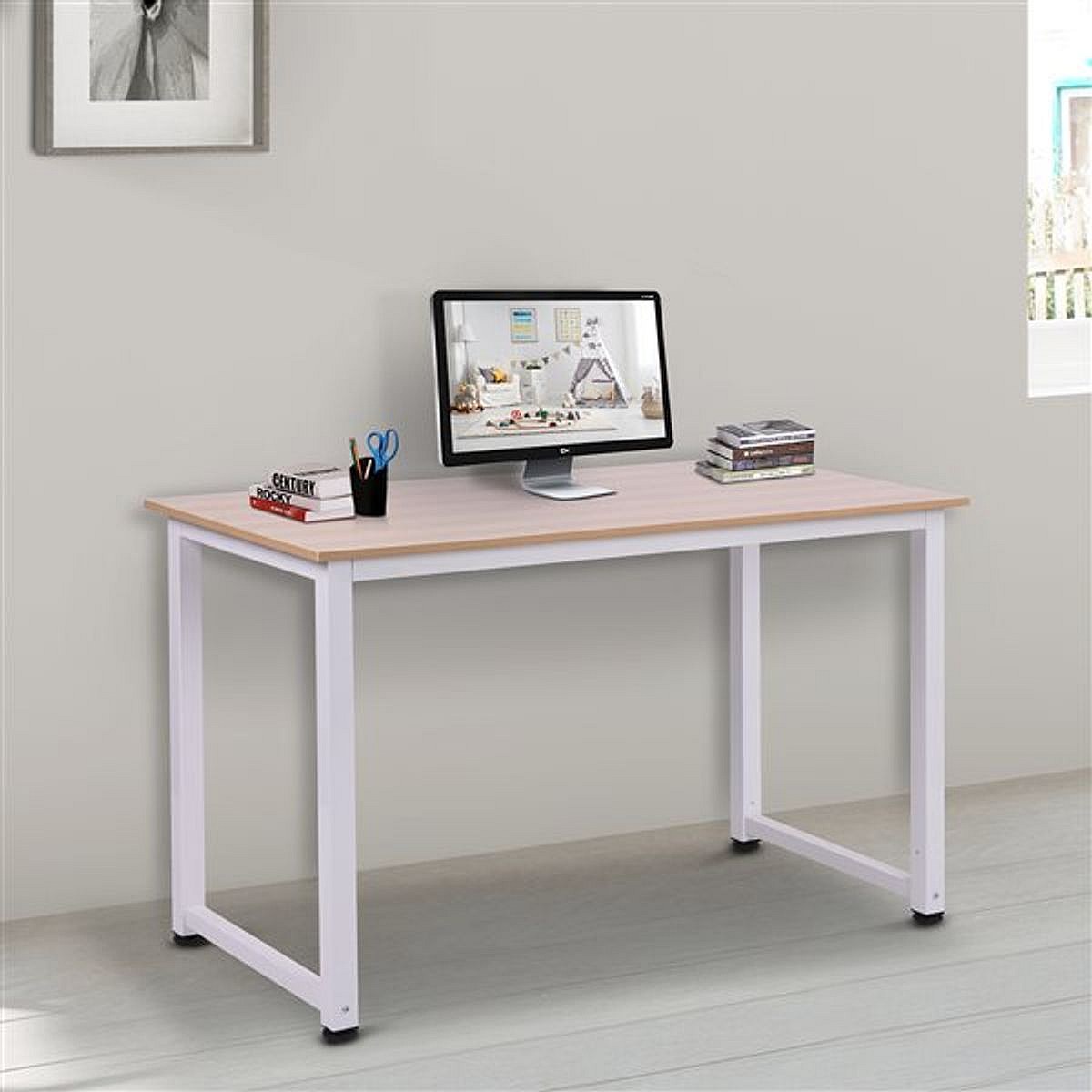 Mesa de ordenador roble y blanco 120x60x76 cm HOMCOM