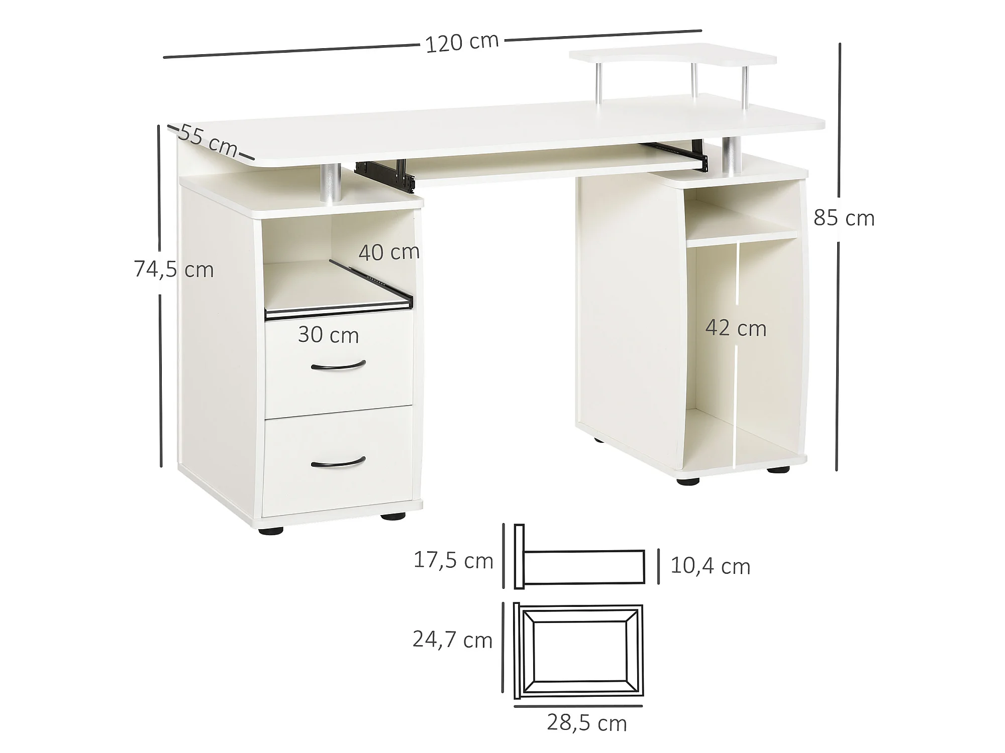 Mesa de ordenador blanco 120x55x85 cm HOMCOM