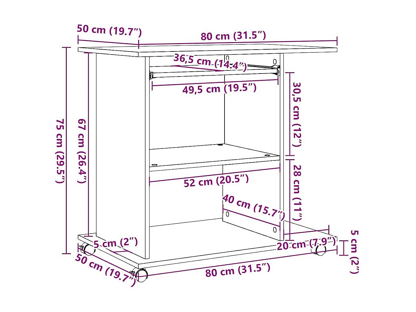 Mesa ordenador madera contrachapada roble artesanal 80x50x75cm
