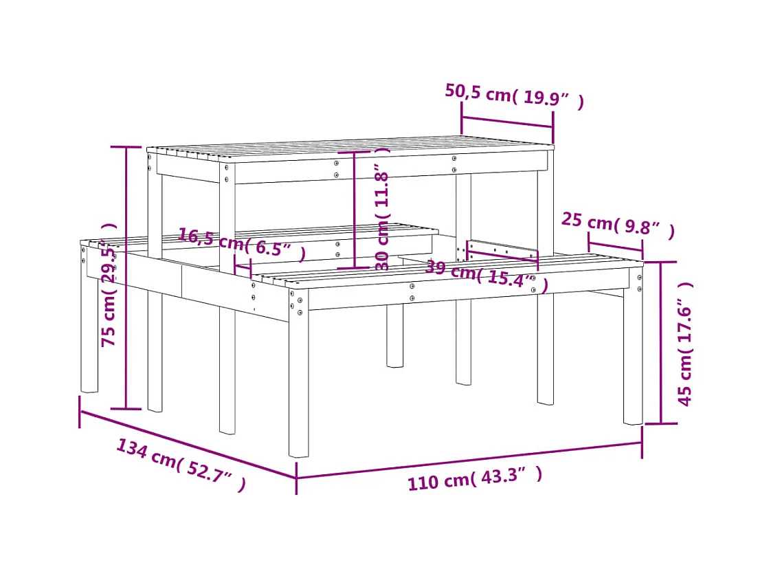 Mesa de pícnic madera pino impregnada 105x134x75 cm
