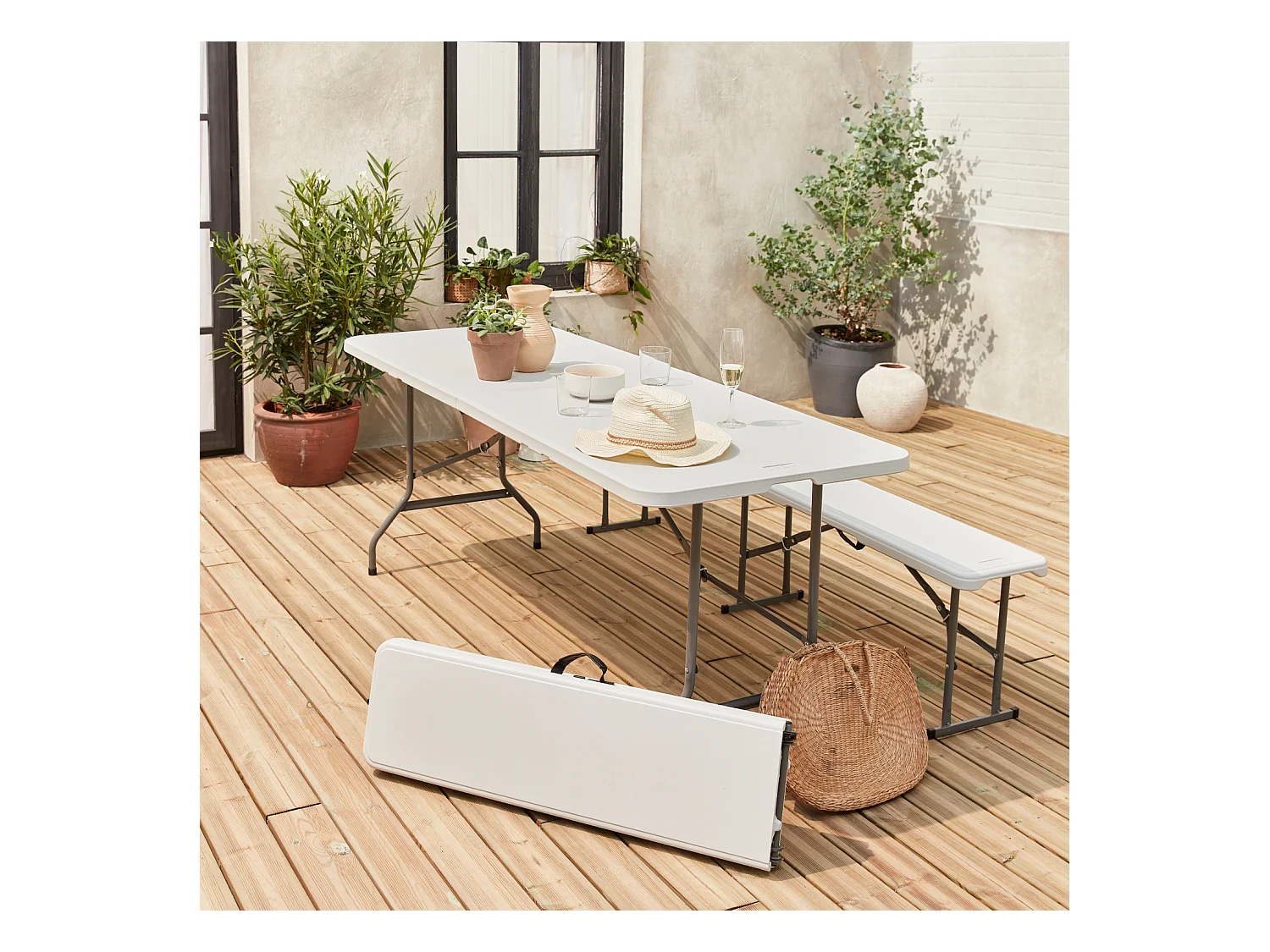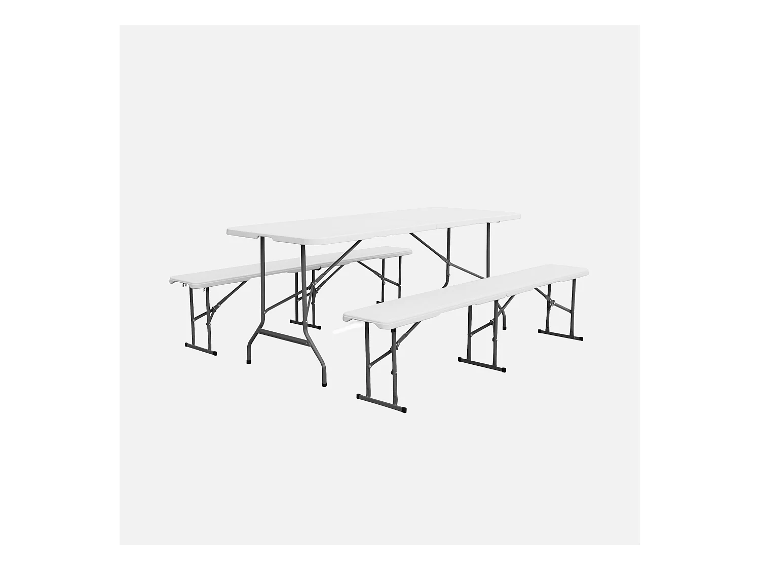 Set de mesa y bancos plegables portátiles para eventos blanco