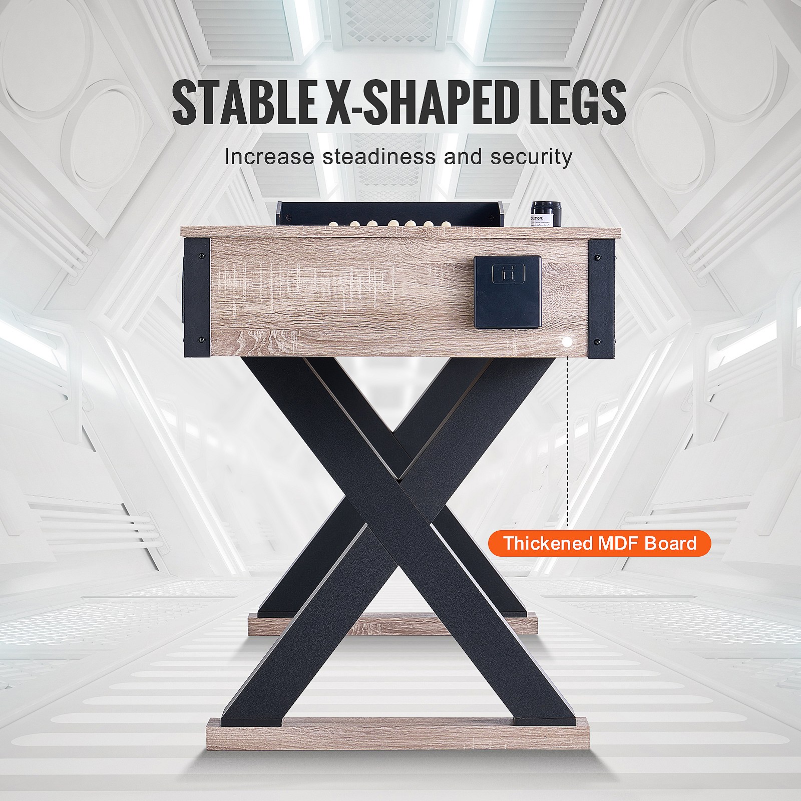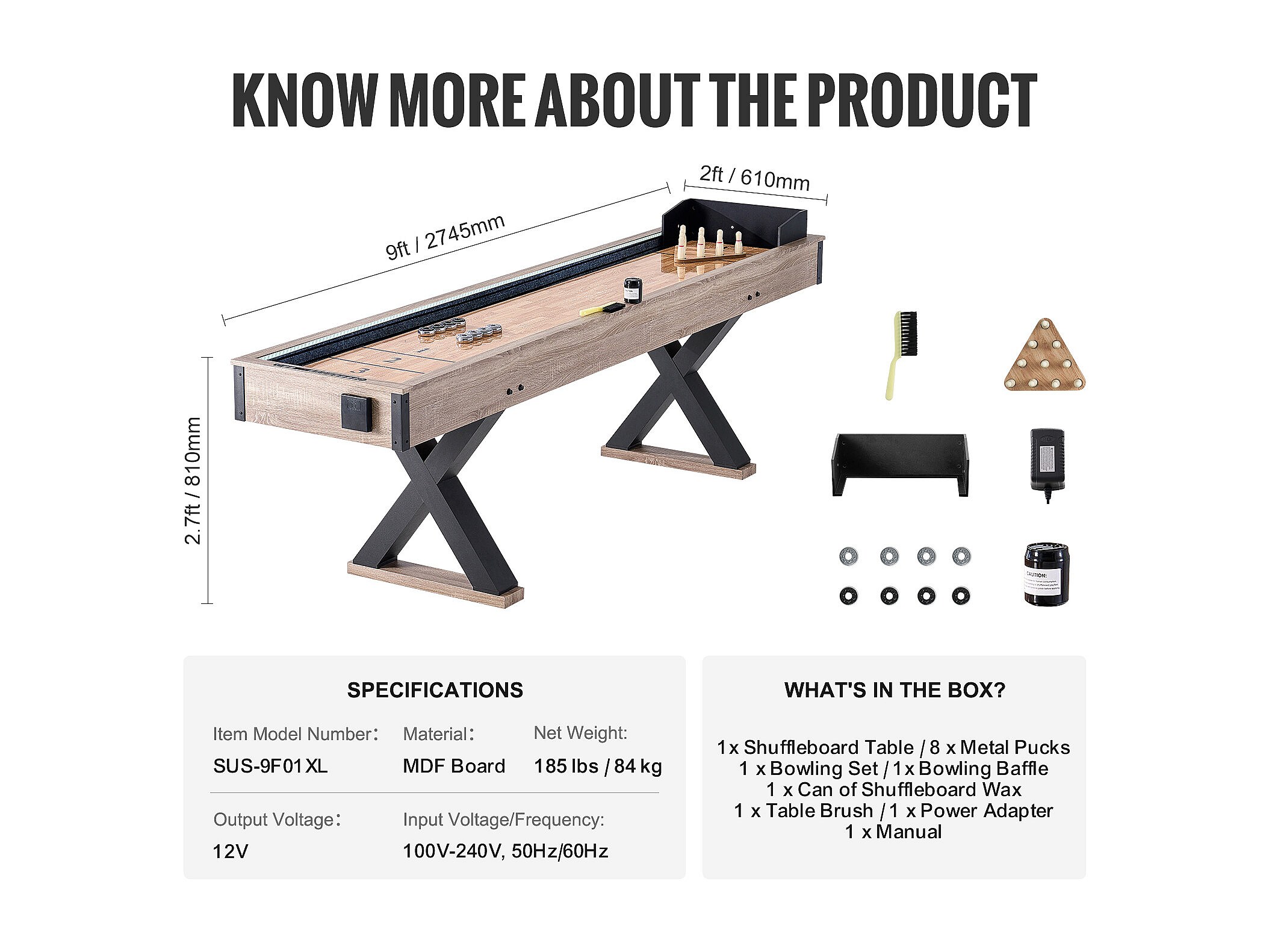 Mesa de Shuffleboard SucceBuy 274CM, Sala de Juegos en el Hogar, Combo de Juego de Tejos y Bolos 2 en 1, Patas de Mesa, 8 Arandelas, Set de Bolos