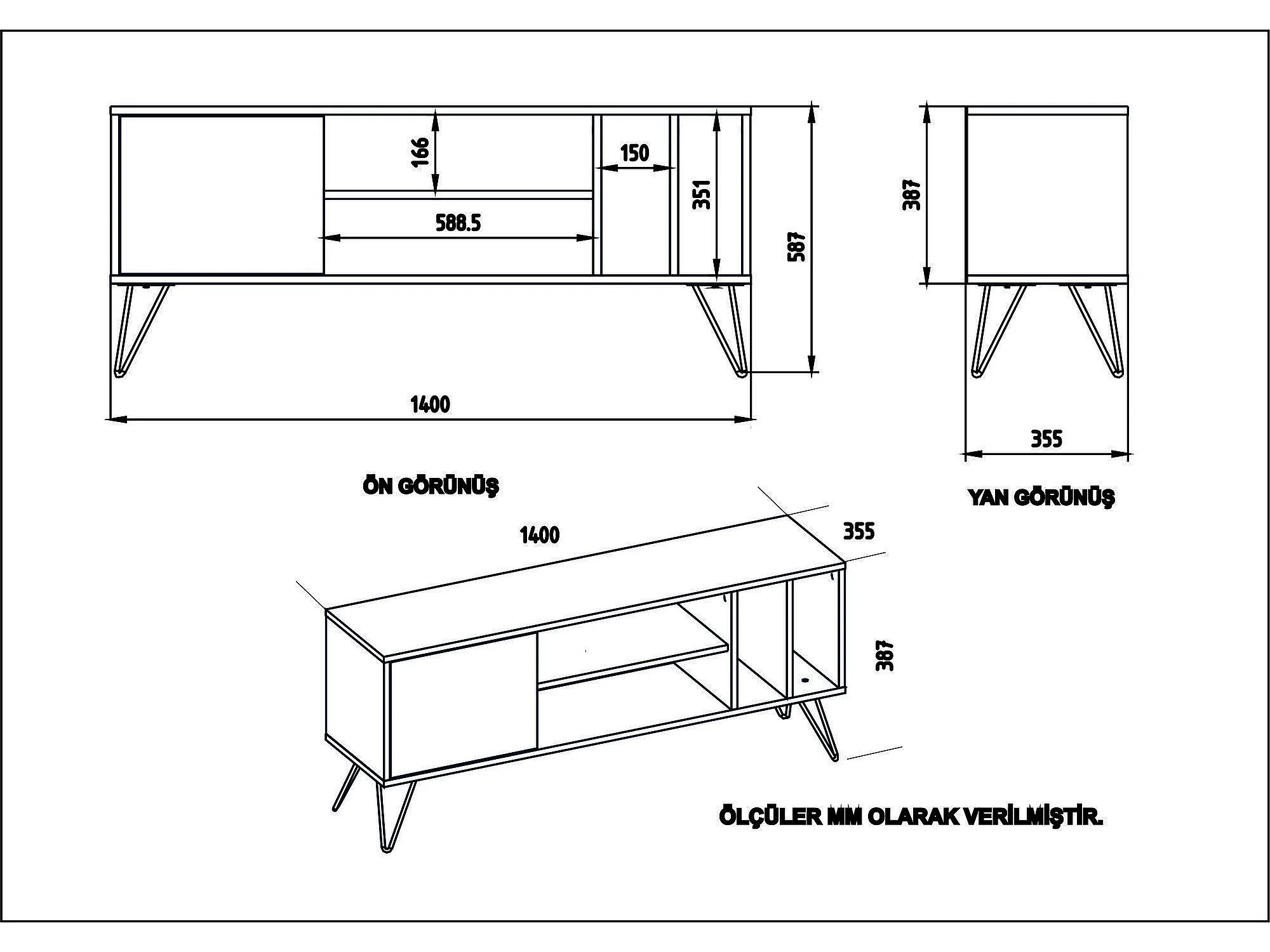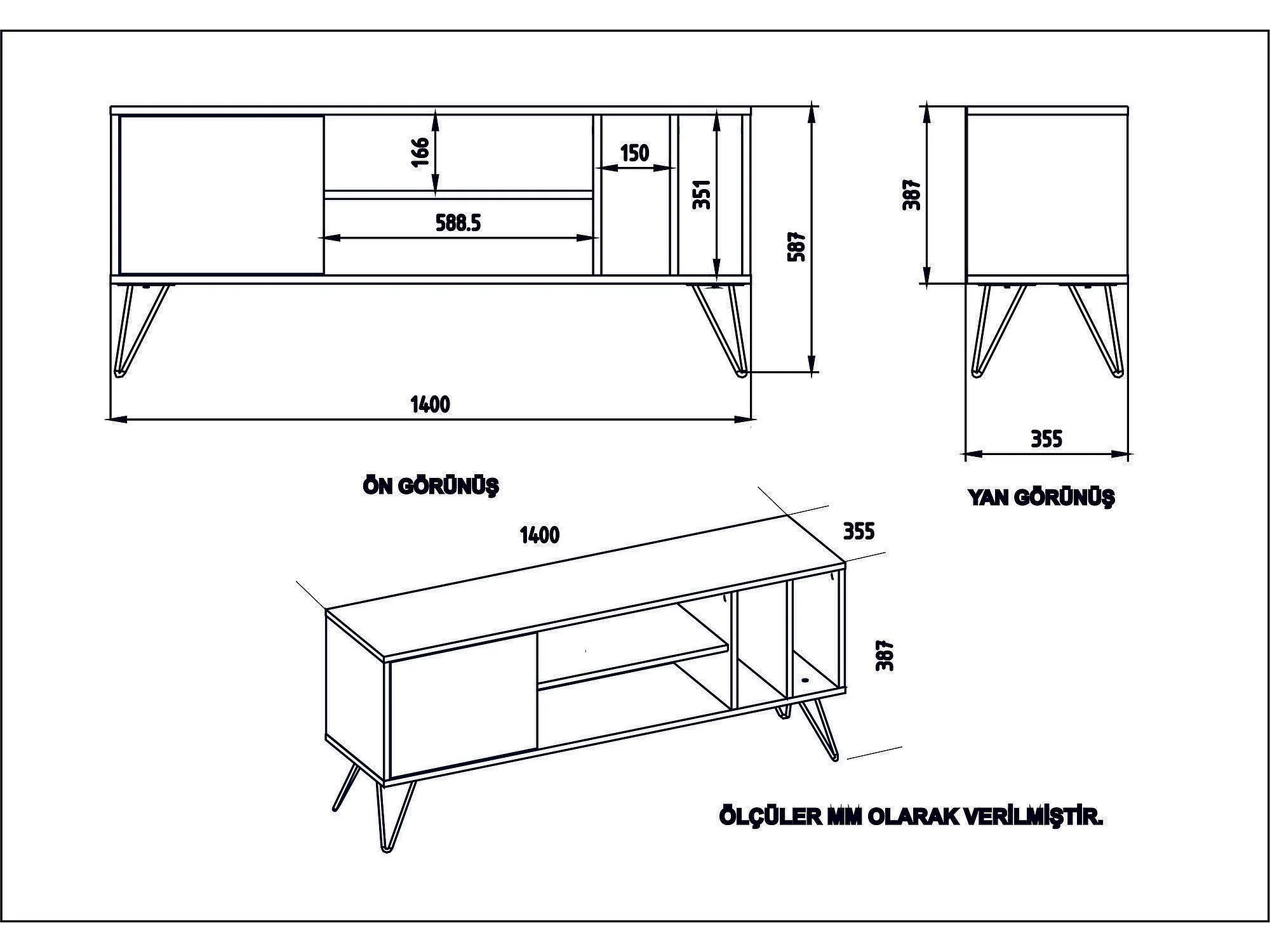 Mesa de tv Kailua 1275, Nogal|Negro, 140x59x36cm