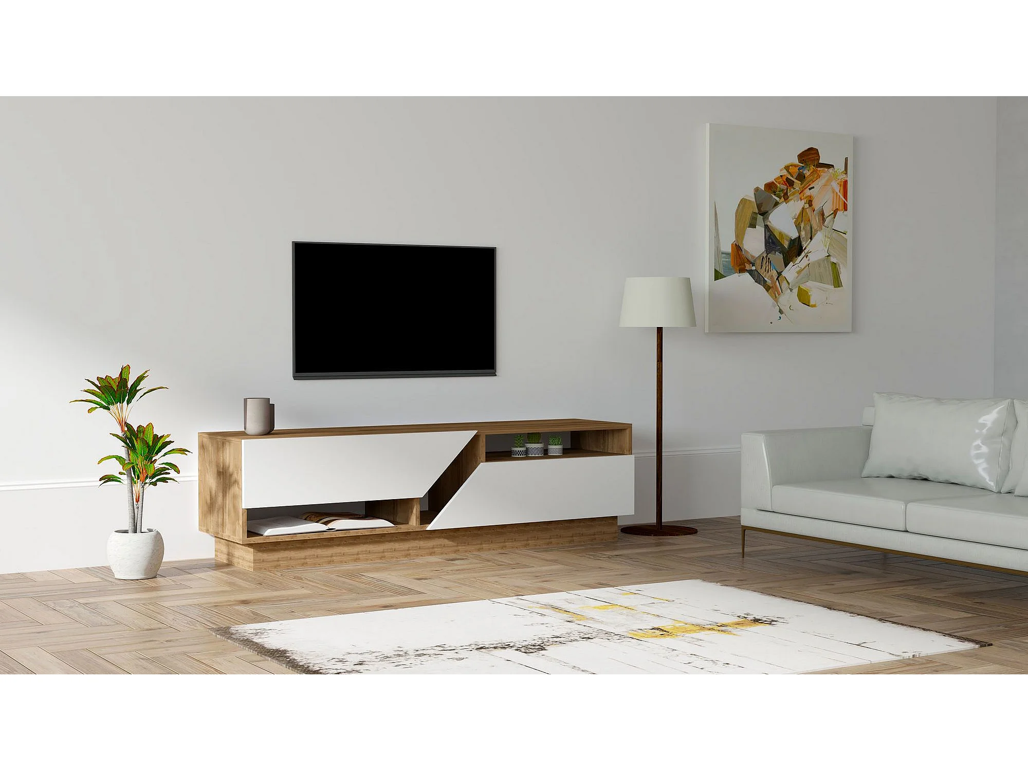 Mesa de tv Kailua 1475, Nogal|Blanco, 160x45x40cm