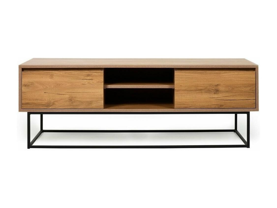 Mesa de tv Kailua V100, Negro|Roble, 180x50x40cm