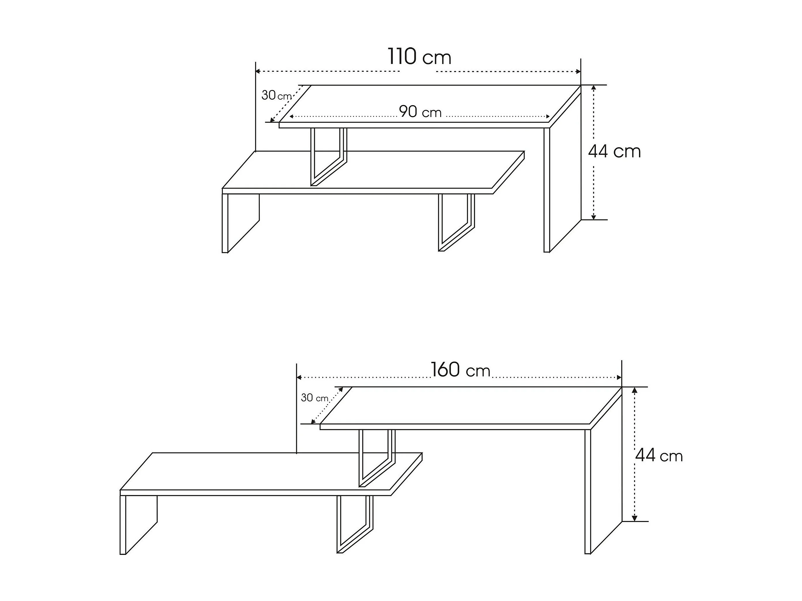 Mesa de tv Kailua 1950, Antracita|Blanco, 150x48x30cm