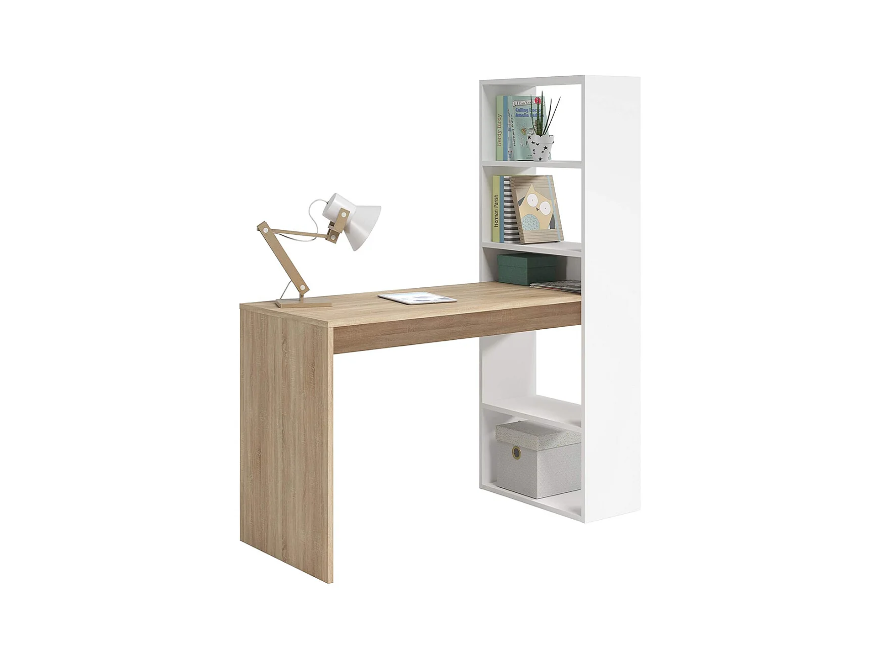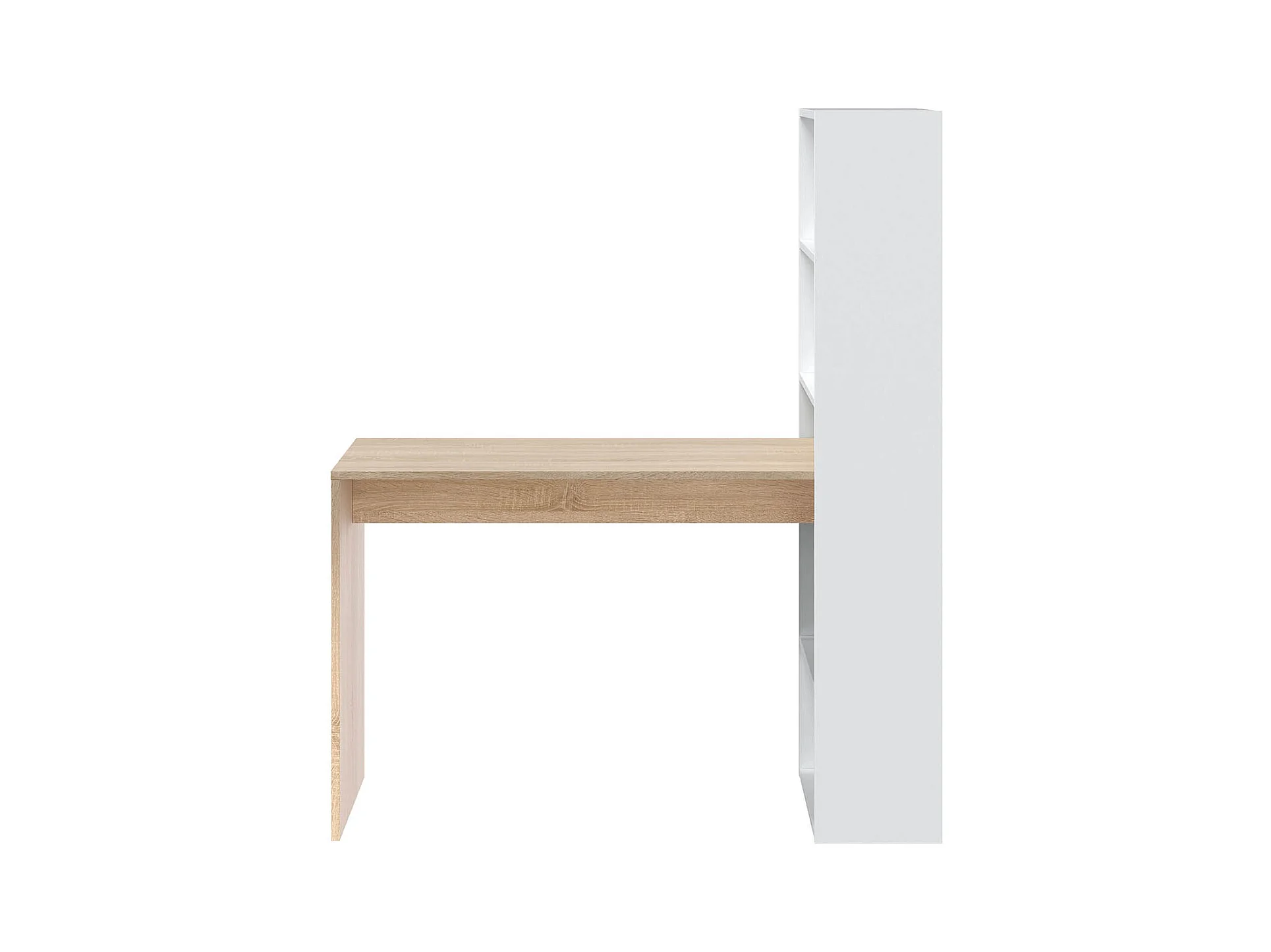 Mesa Escritorio con Estantería Reversible Integrada con Acabado en Blanco Ártico y Roble Canadiense - Dim: 120 cm (Ancho) x 53 cm (Fondo) x 144 cm (Alto)