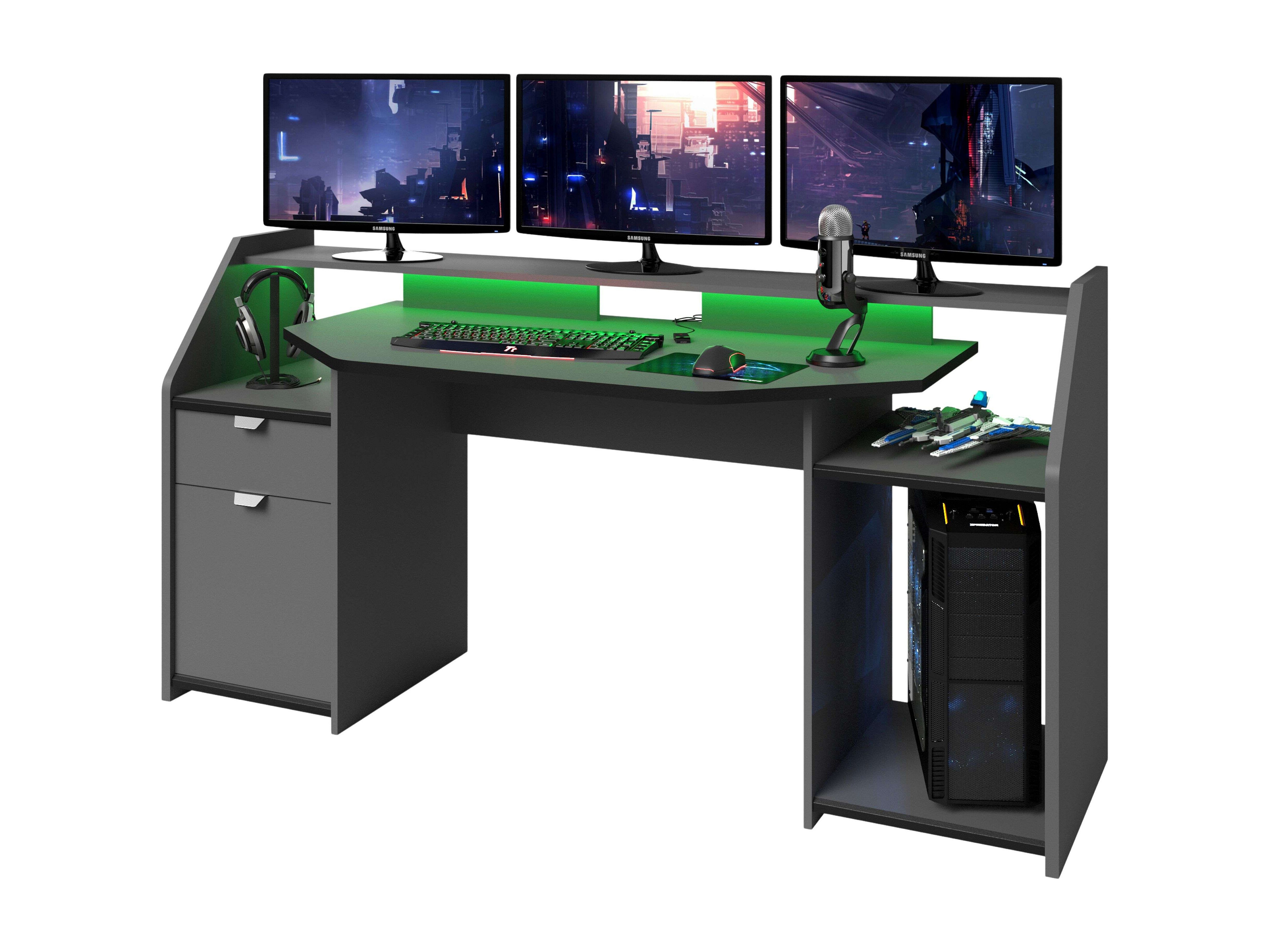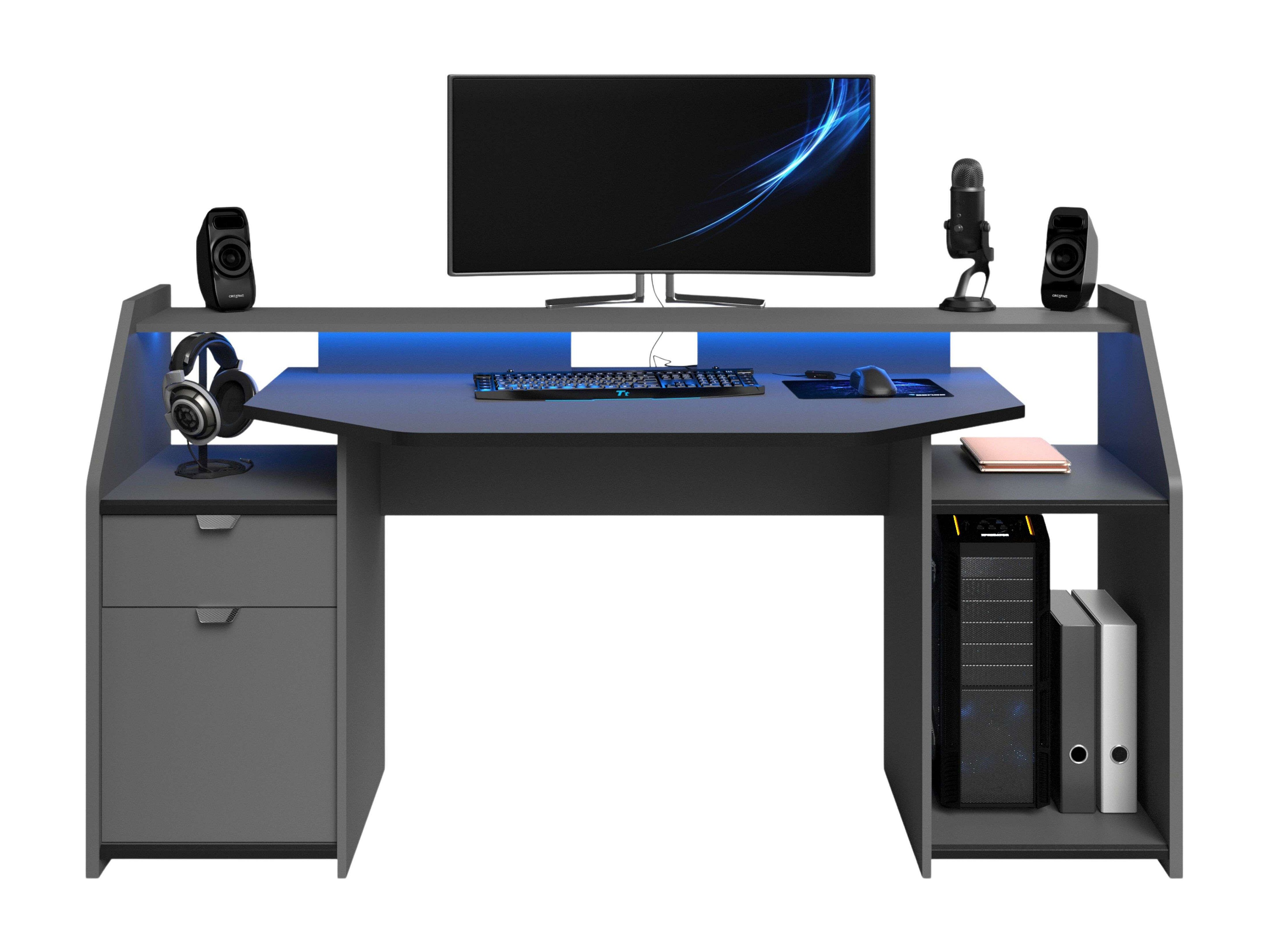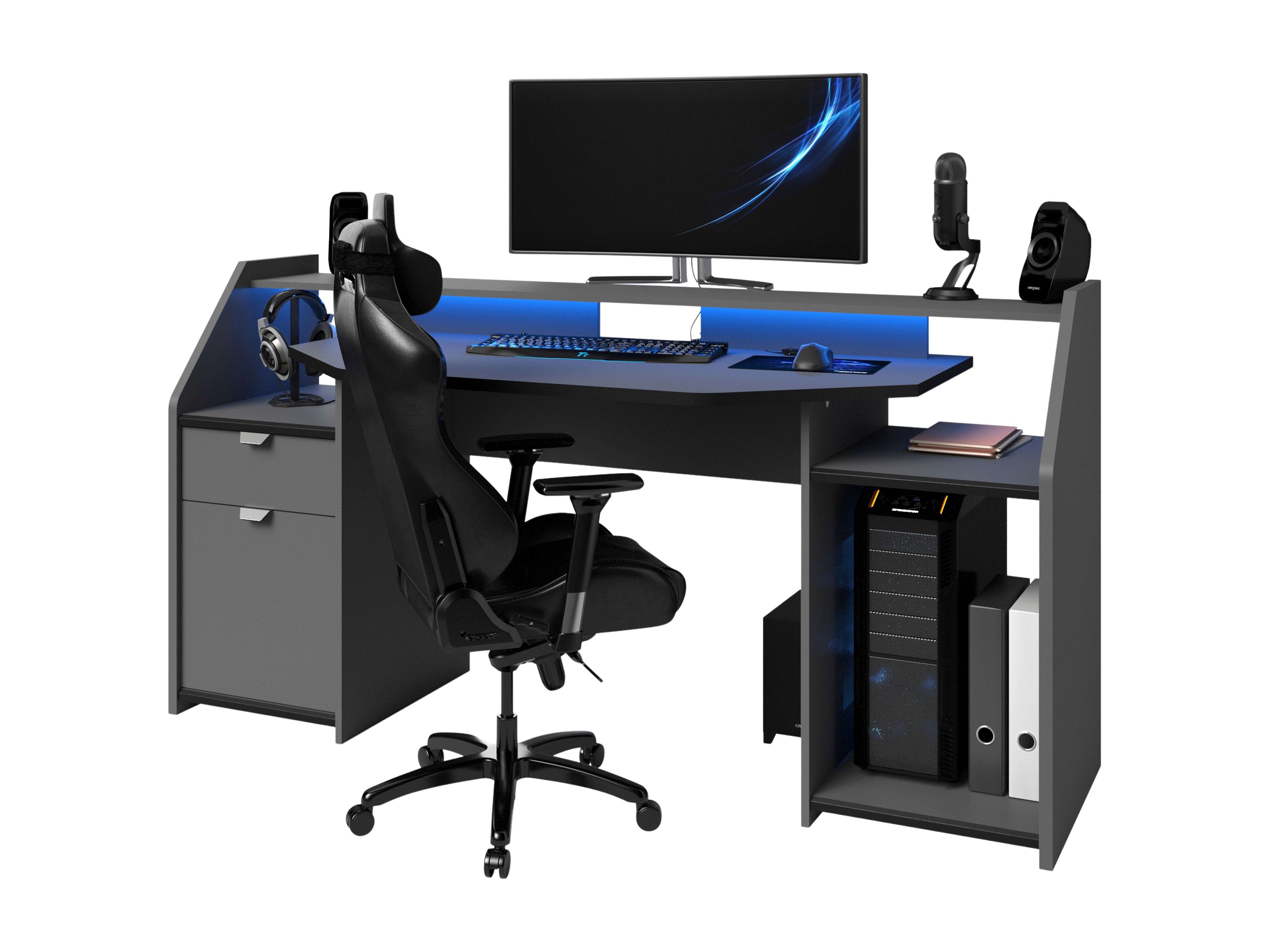 Mesa de ordenador color antracita Gamer gris 88 cm (alto) x 136 cm (ancho) x 67 cm (prof.)