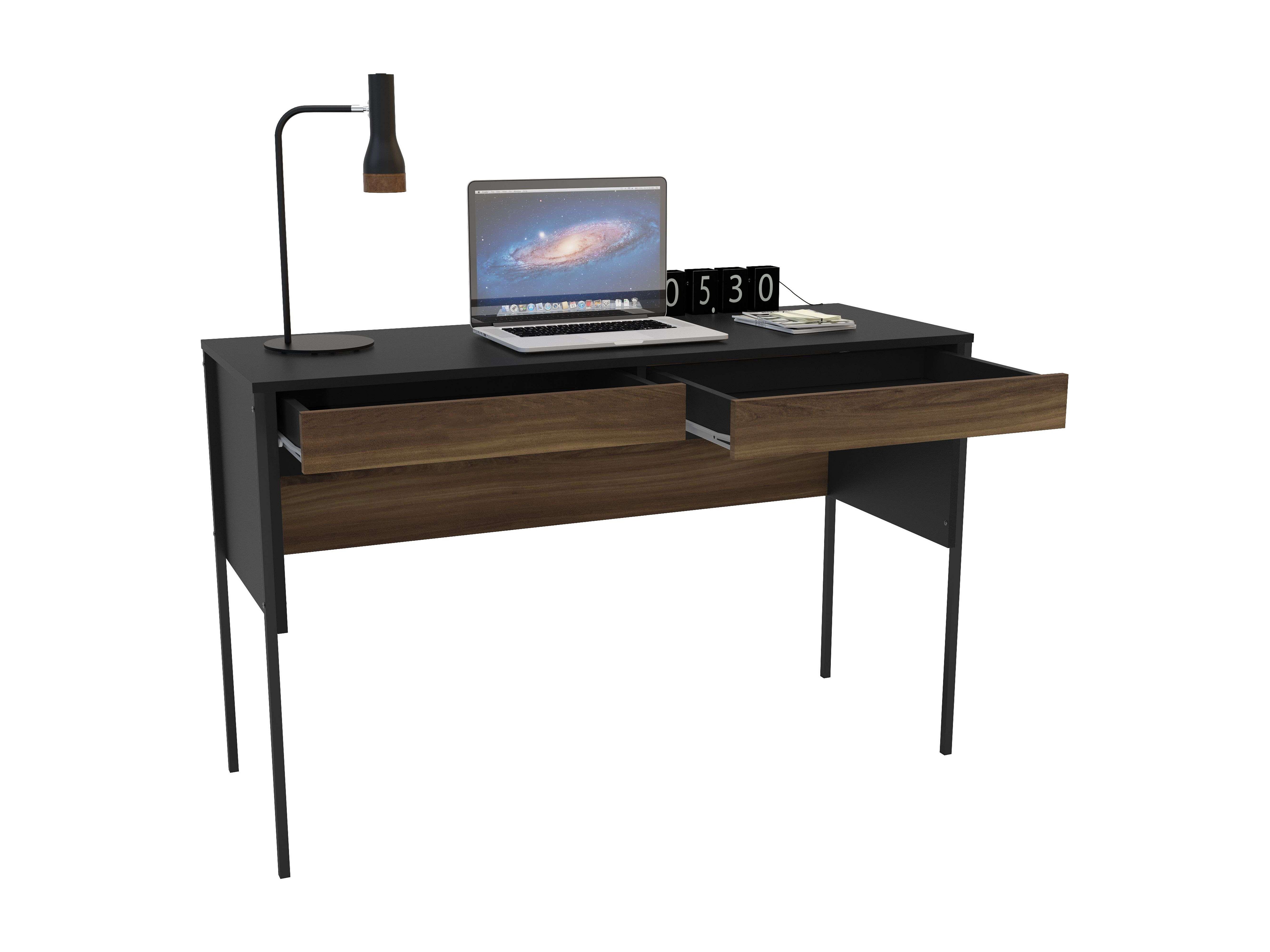Mesa Escritorio Mallorca 2 Cajones Oficina Roble Oscuro/Negro 120 cm