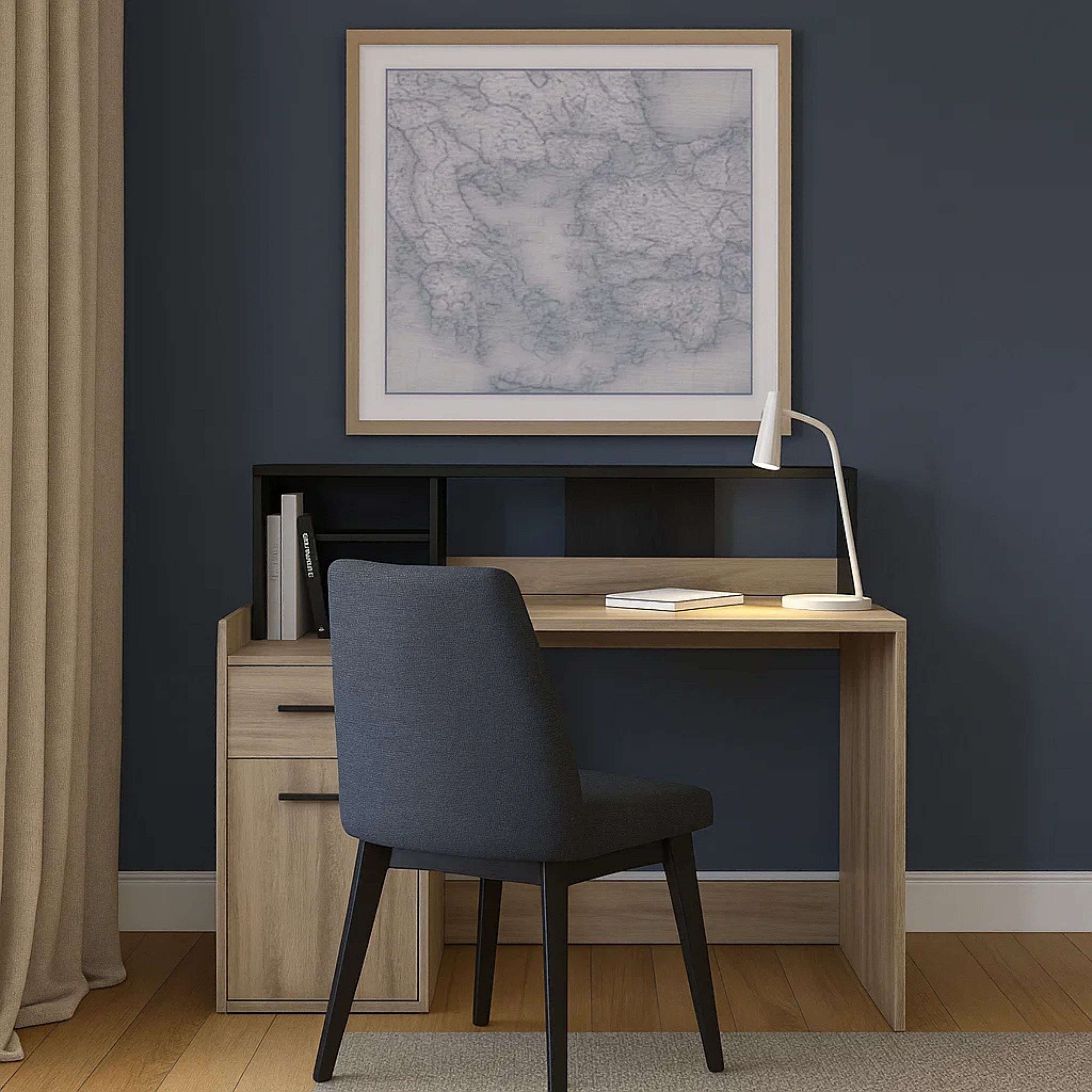 Mesa Escritorio Reversible Melamina Roble/Negro 121cm Estilo Moderno