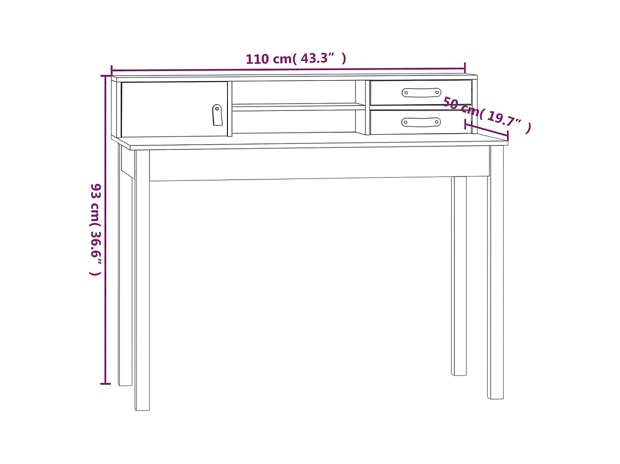 Mesa escritorio puesto de trabajo mueble ordenador estudio 110 x 50 x 93 cm madera maciza de pino blanco 02_0023507