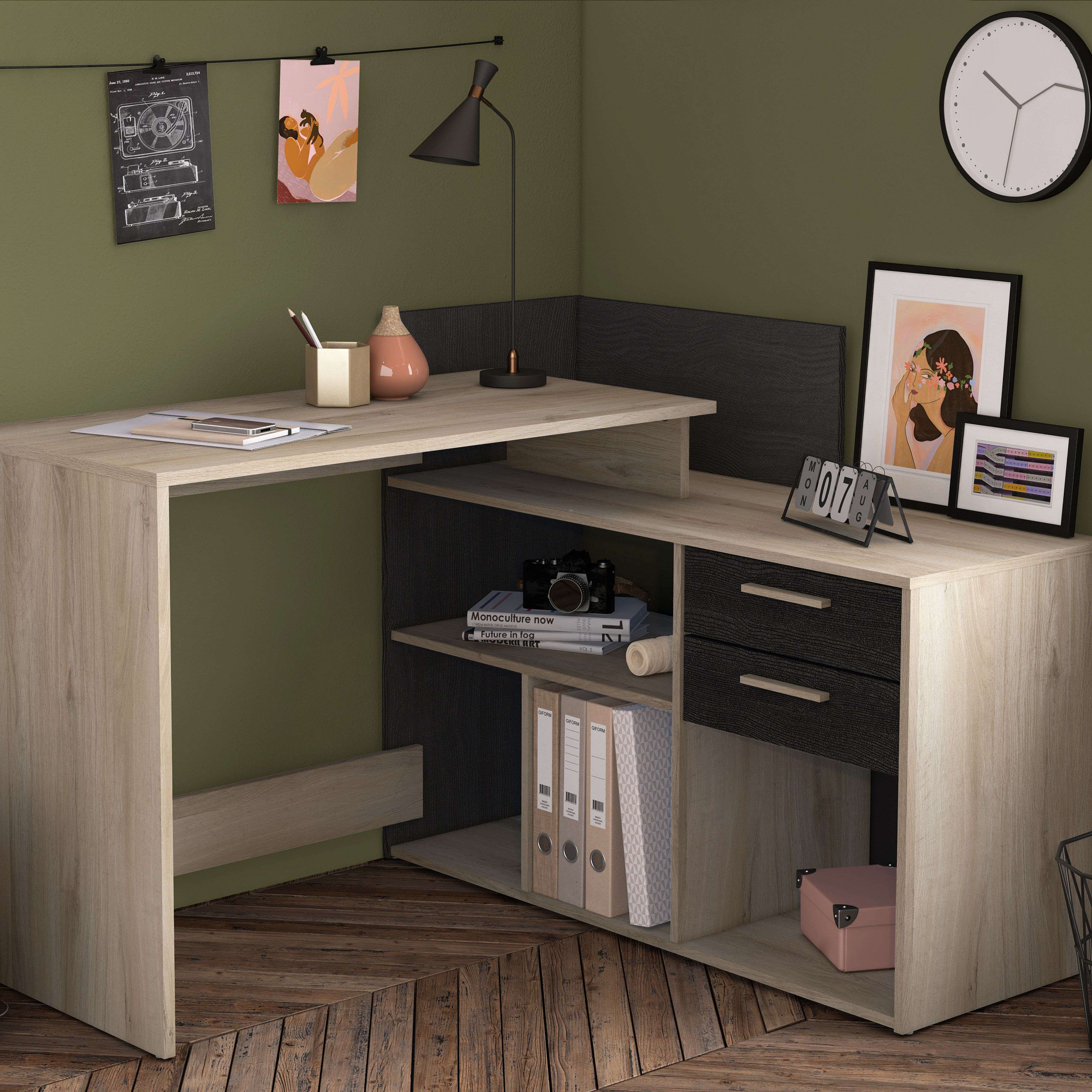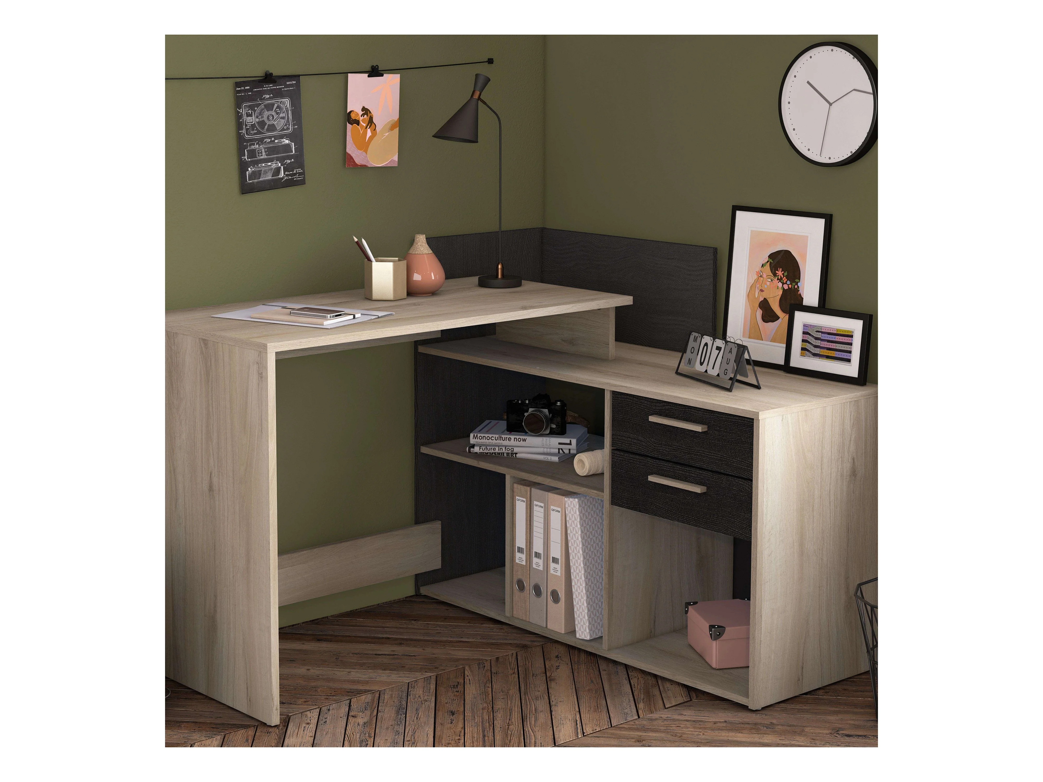 Mesa Escritorio Reversible Melamina Roble/Negro 121cm Estilo Moderno