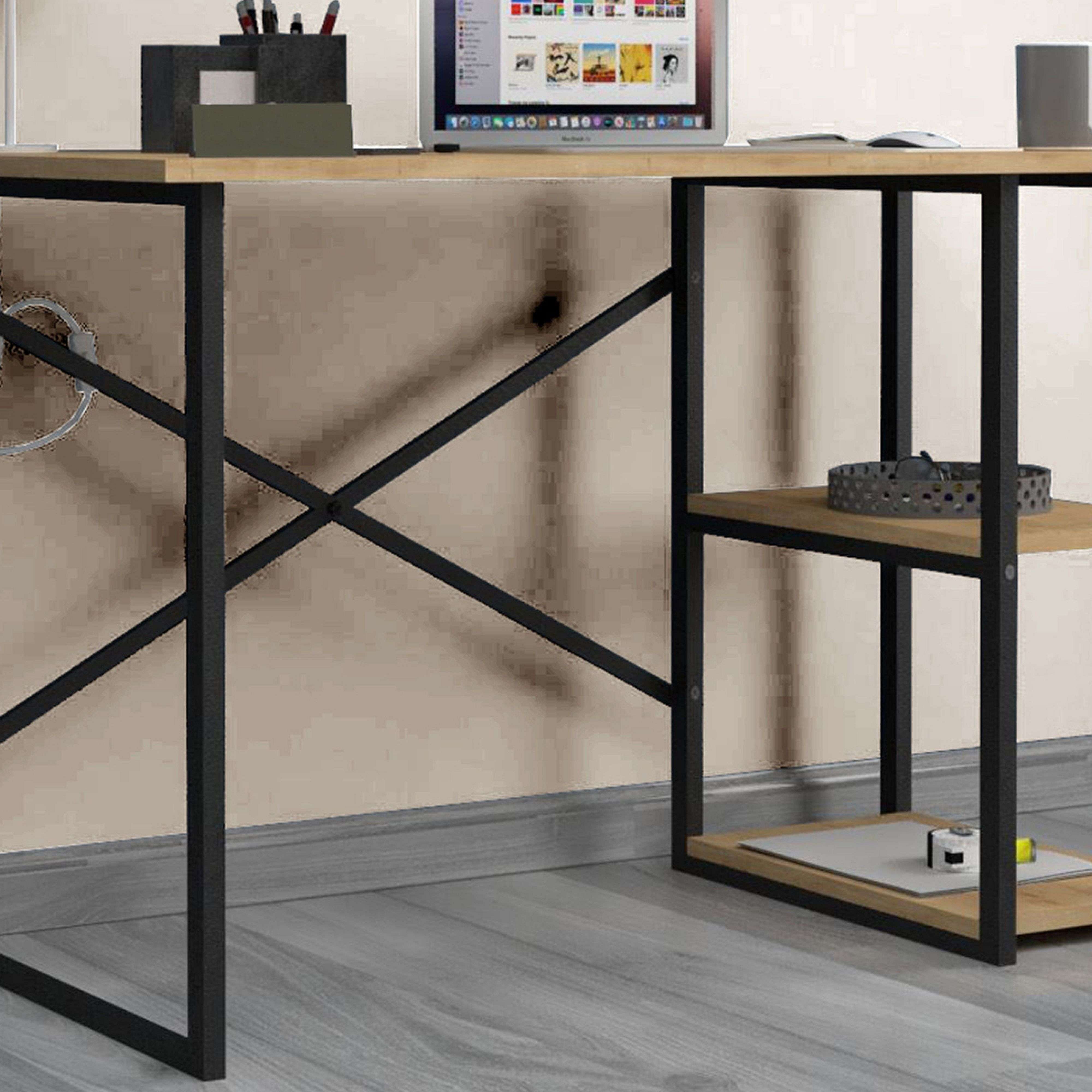 Mesa Escritorio Rus 120 cm 2 Estantes Industrial Roble/Negro