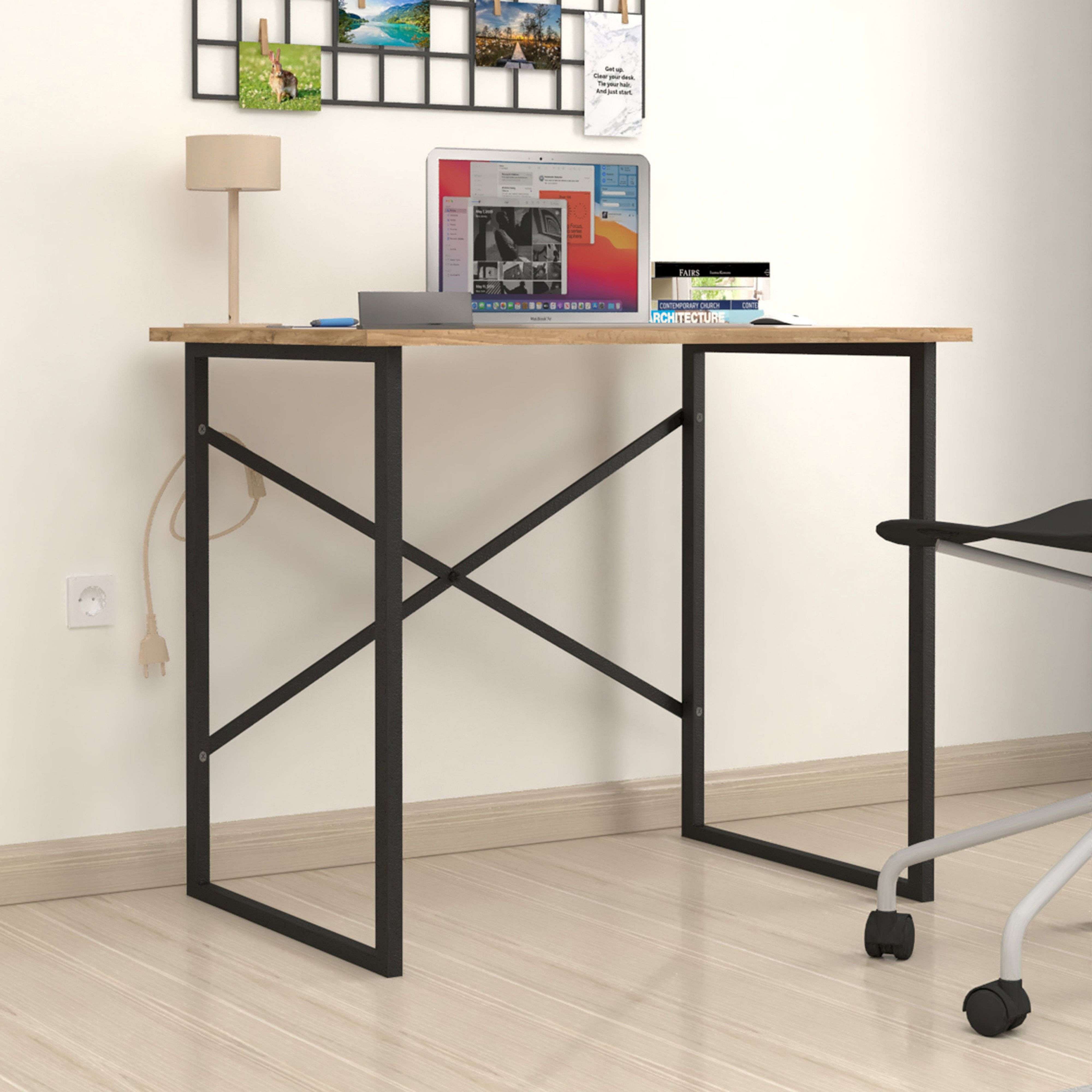 Mesa Escritorio Rus Industrial Roble y Negro 90 cm