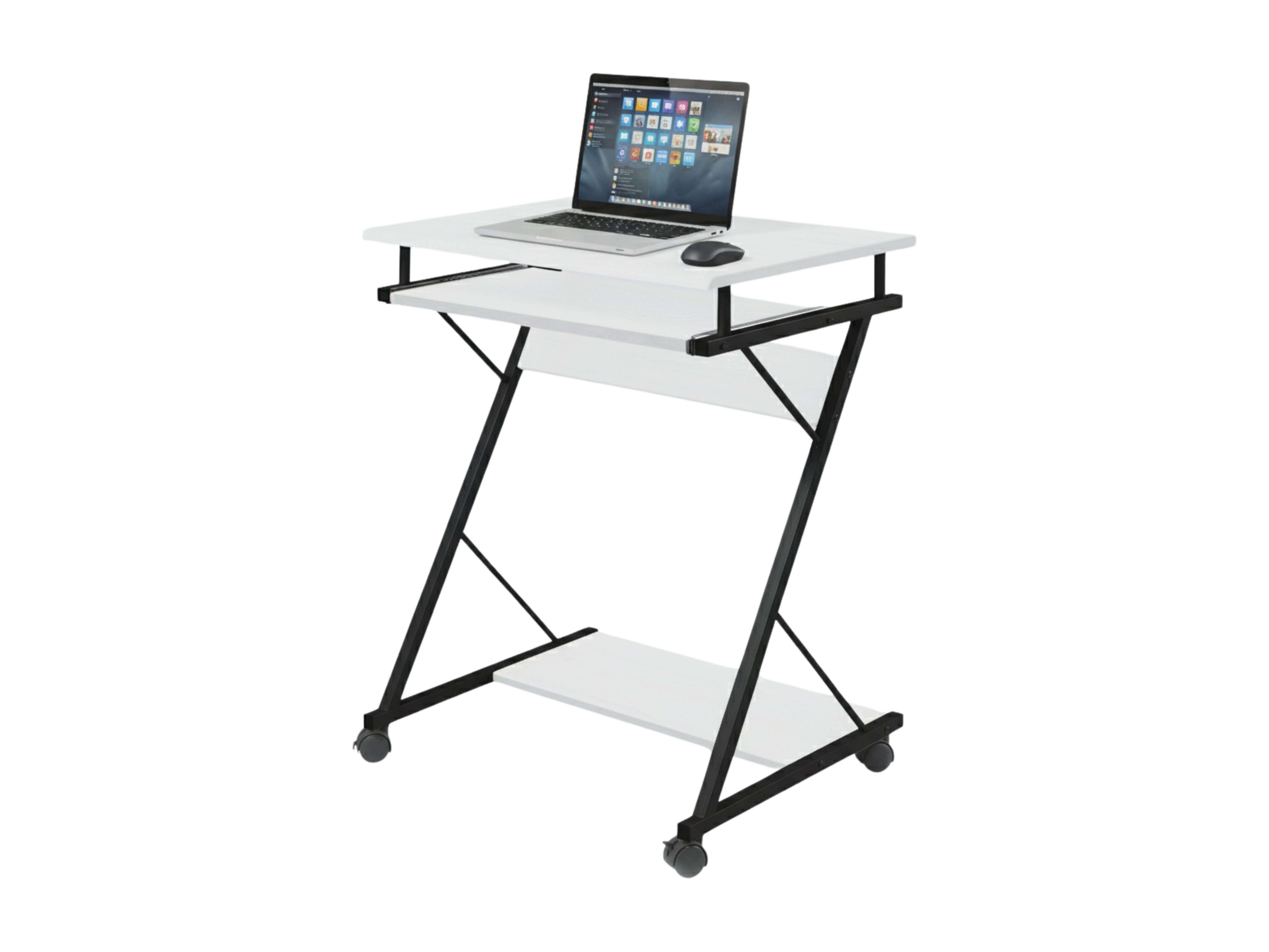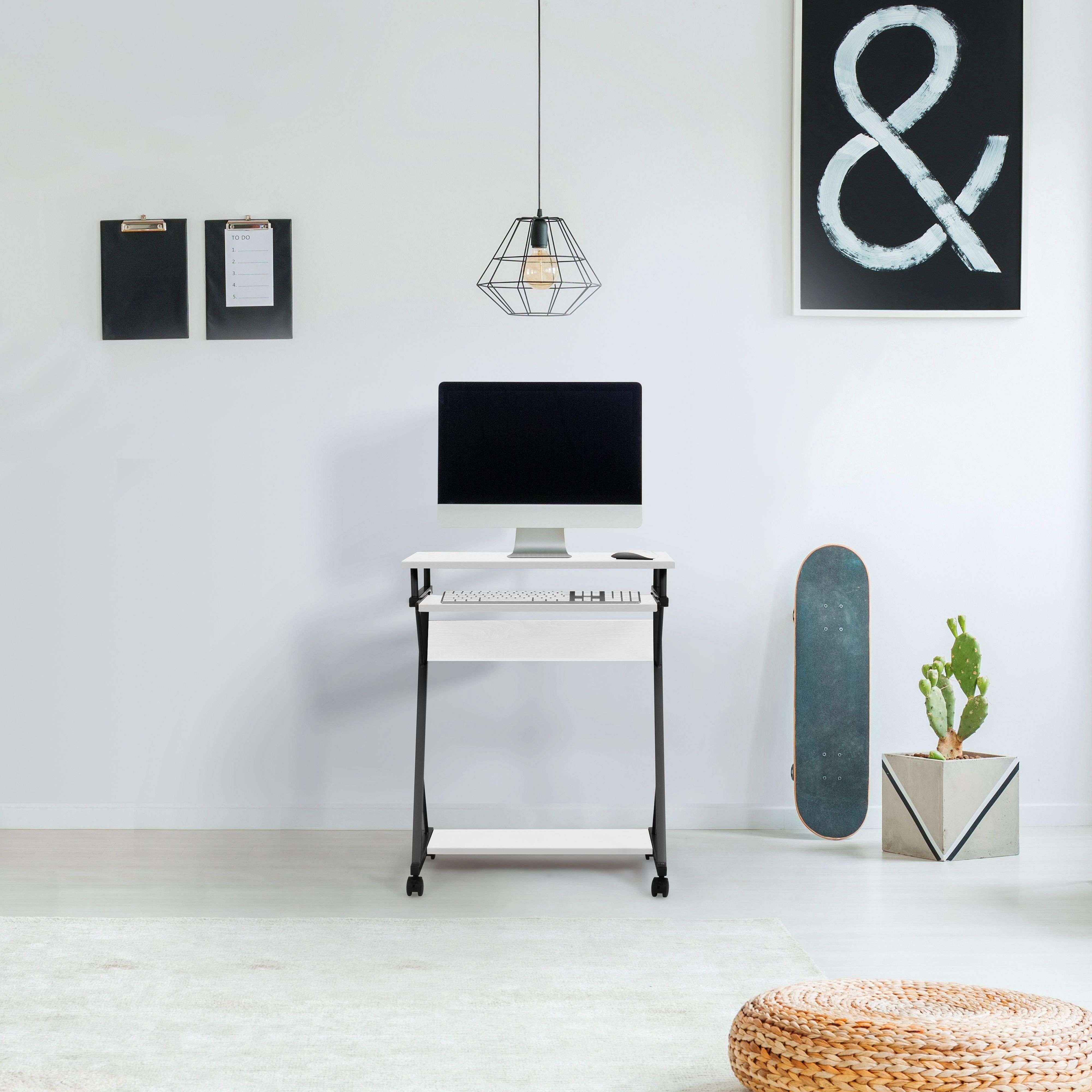Mesa Escritorio Volta Oficina Bandeja Extraíble, Ruedas Blanco/Negro 60x75x48 cm