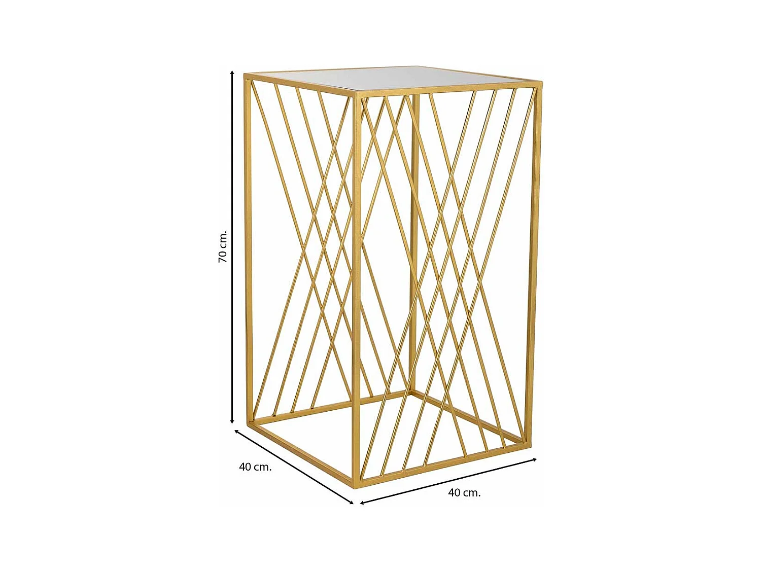 Mesa esquinera cuadrada de metal dorado 40x40x70