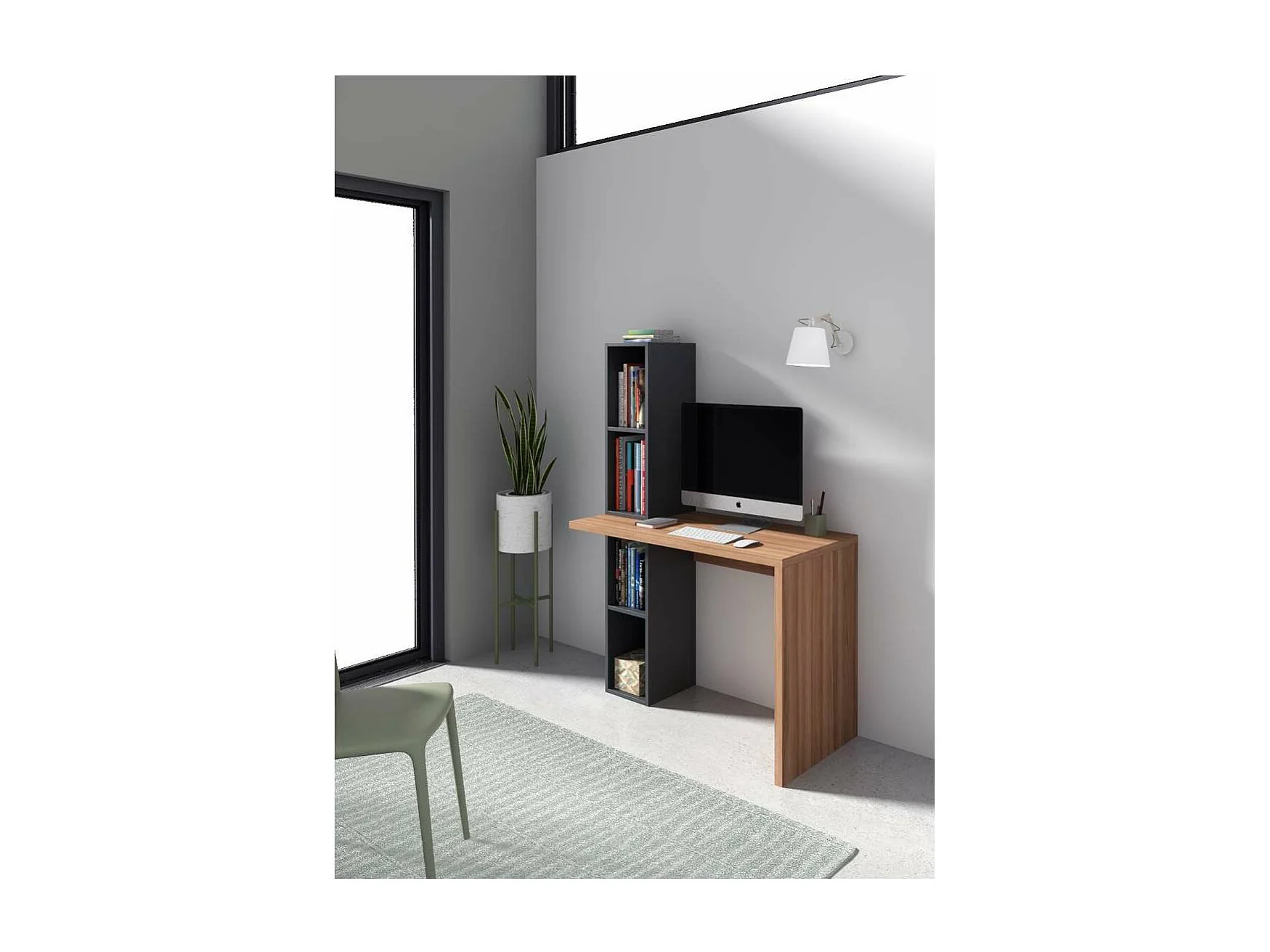 Mesa estudio Mod-Gandia acabado nogal/grafito, 52 x 133 x 149 cm (fondo x ancho x alto)
