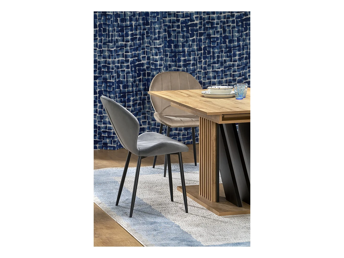 Mesa de comedor extensible 100-135cm color roble con patas negras ARZAL