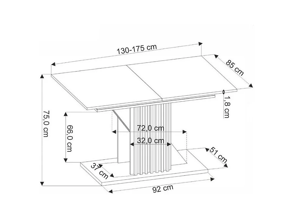 Mesa de comedor extensible de madera y negro 125cm Omen