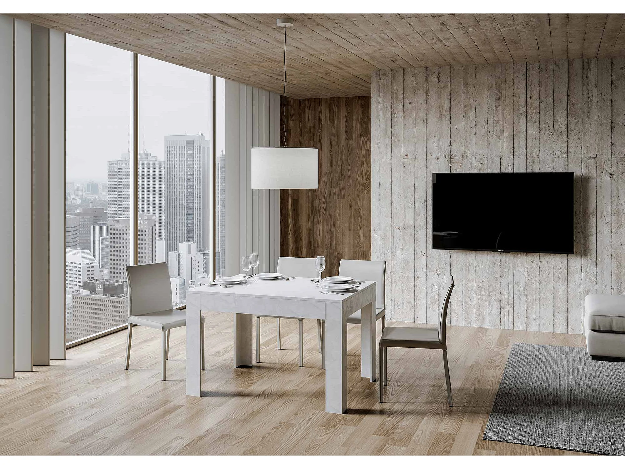 Mesa extensible 90x120/180 cm Bibi Blanco Espatulado