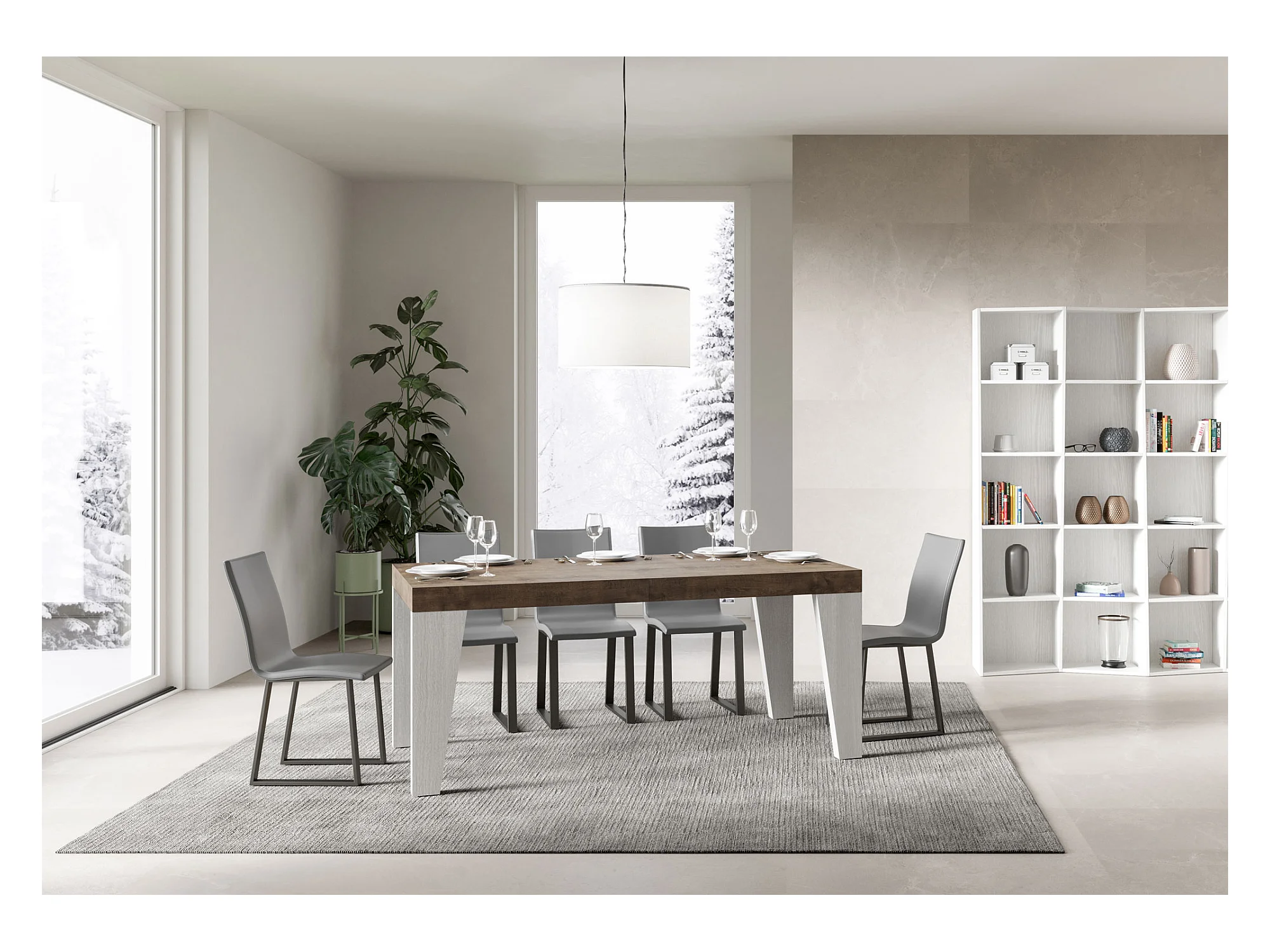 Mesa extensible 90x160/420 cm Tapa Naxy Mix Nogal - Patas Fresno Blanco