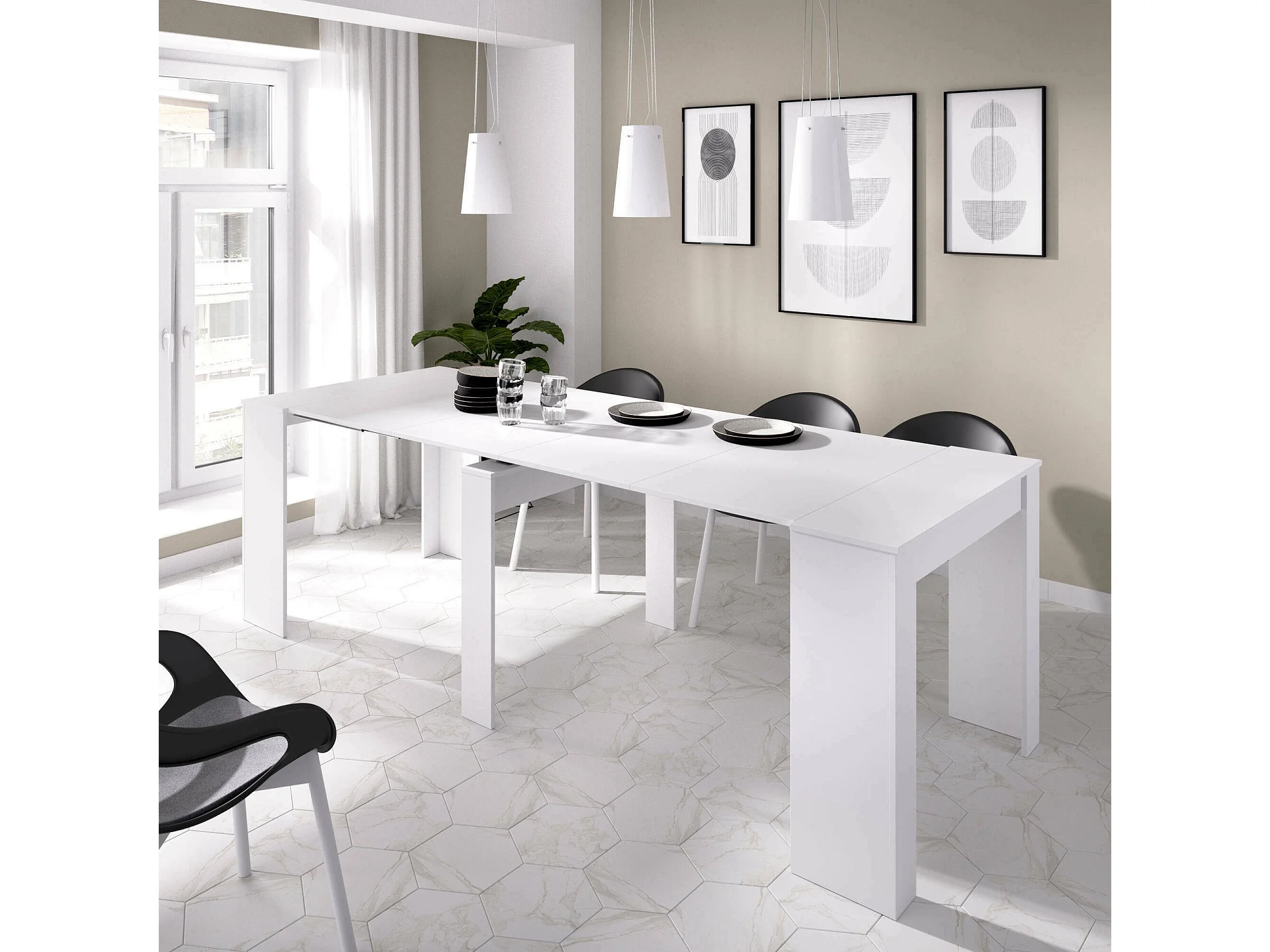 Consola extensible Cognolo, Mesa de comedor multiusos, Consola extensible multiposición con soporte de extensión incluido, 54/239x90h77 cm, Blanco