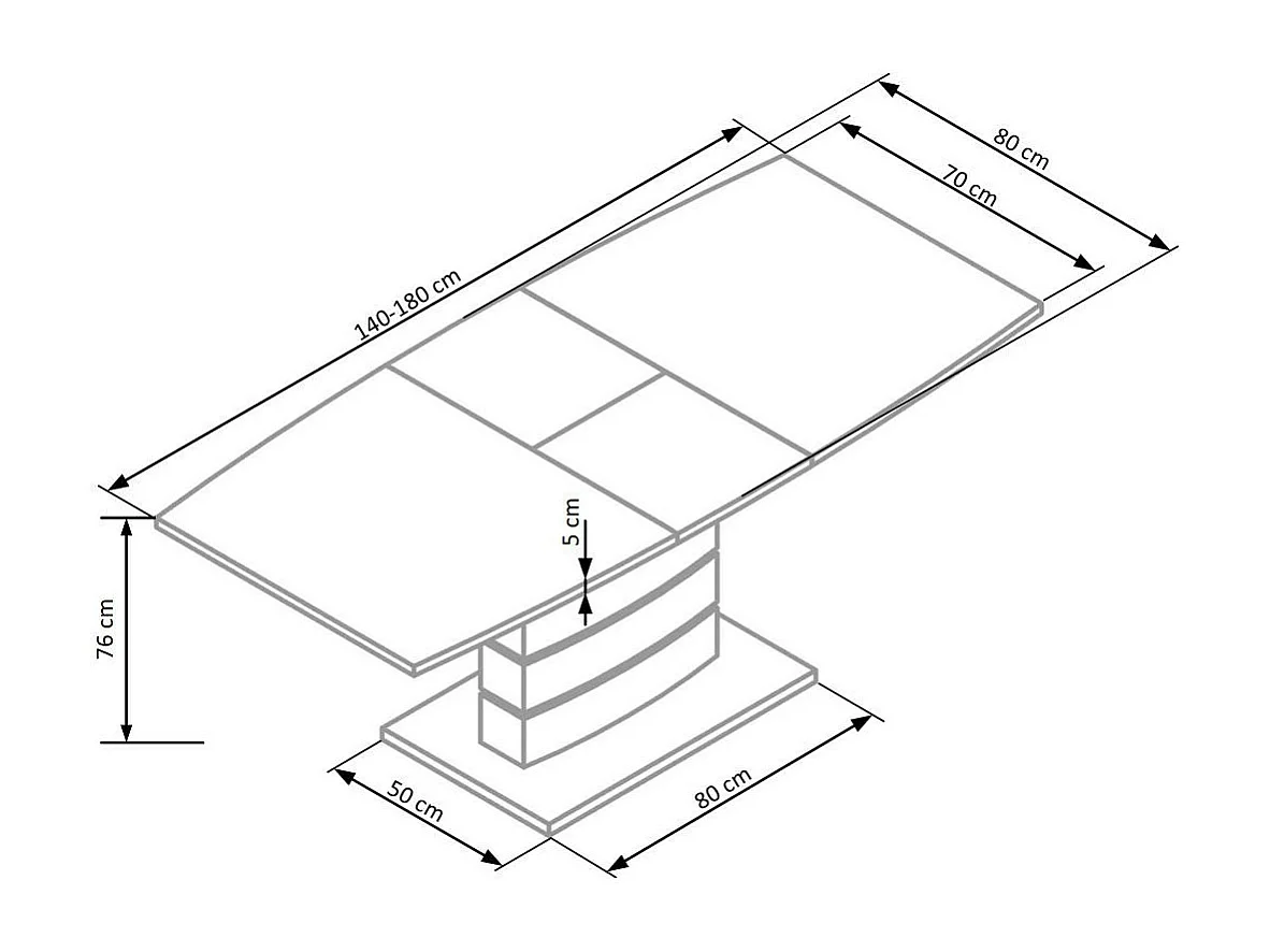 Mesa de comedor extensible de 76x120-160x80 cm de tablero laminado sintético blanco Nerea