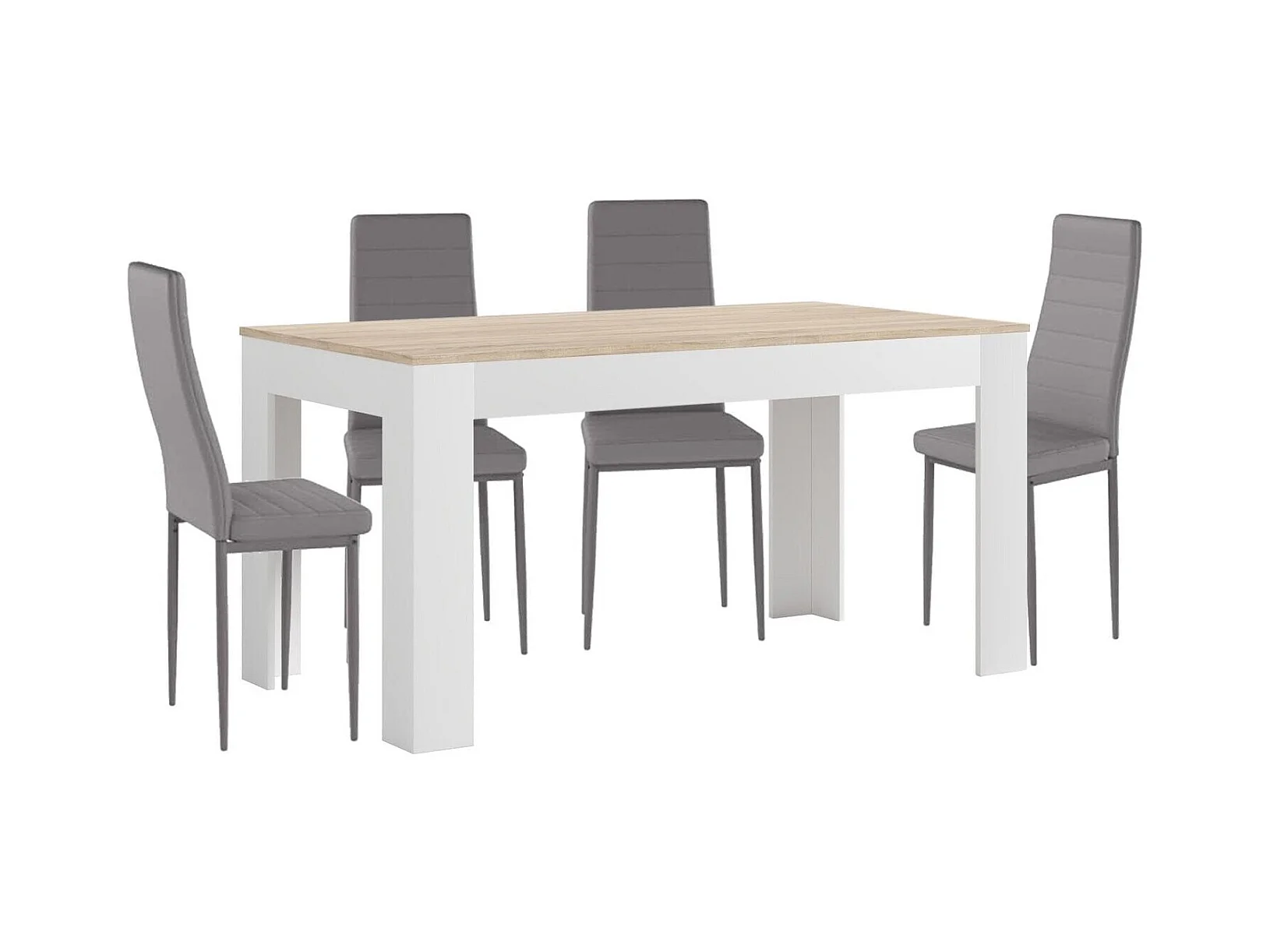 Mesa Extensible de Comedor o Cocina Blanco y Cambria + 4 Sillas en Polipiel/metal Gris