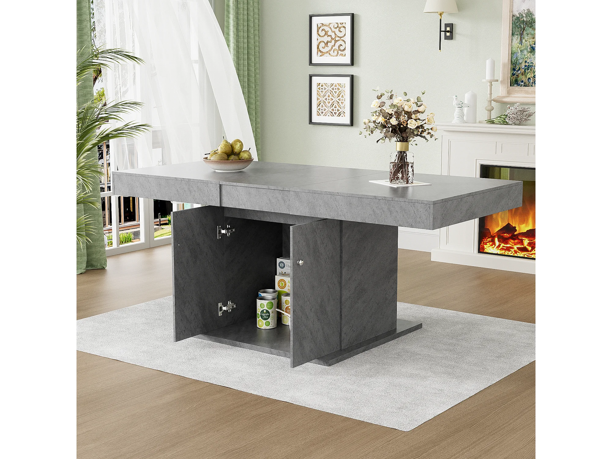Mesa extensible de hormigón MDF L140-180 x An80 x Al76 cm con almacenamiento multifuncional
