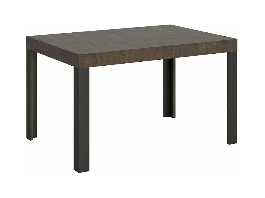 Mesa extensible de madera con 4 patas de madera y acero antracita Liva-Color Marrón-Soporte 4 pies-Ancho extensible
