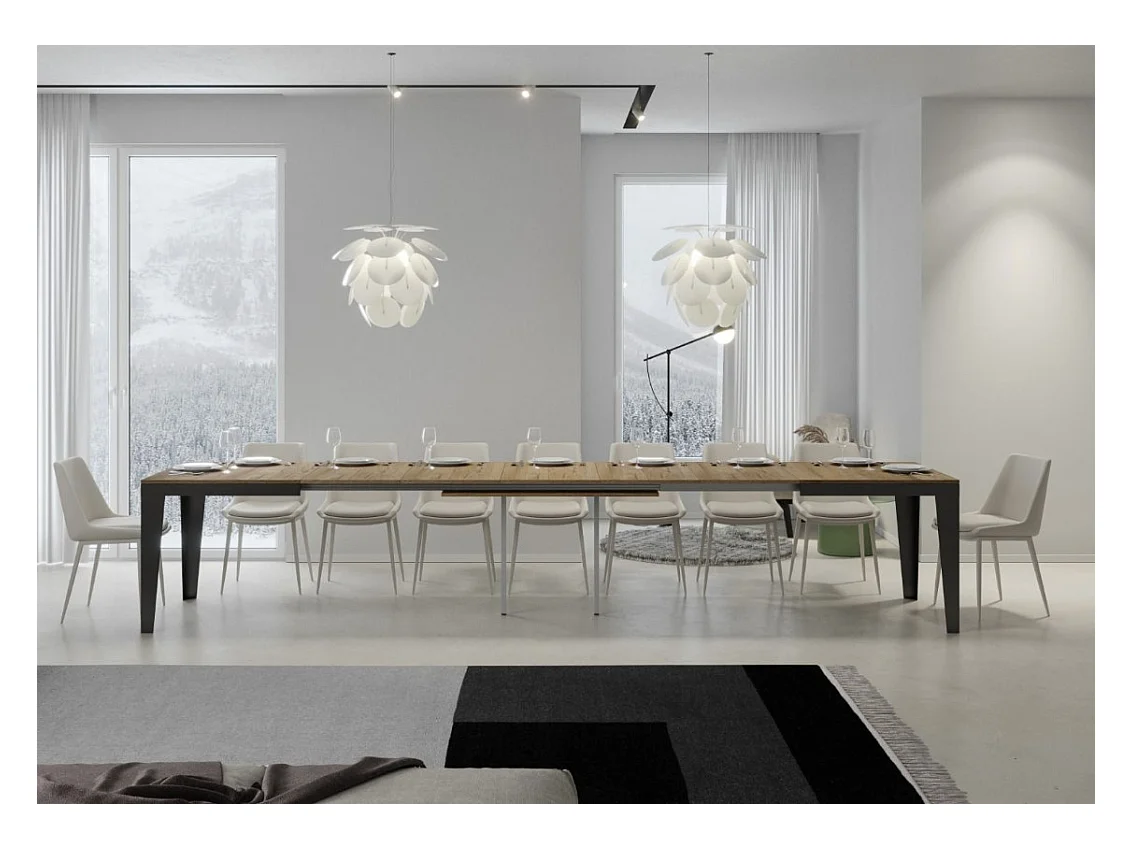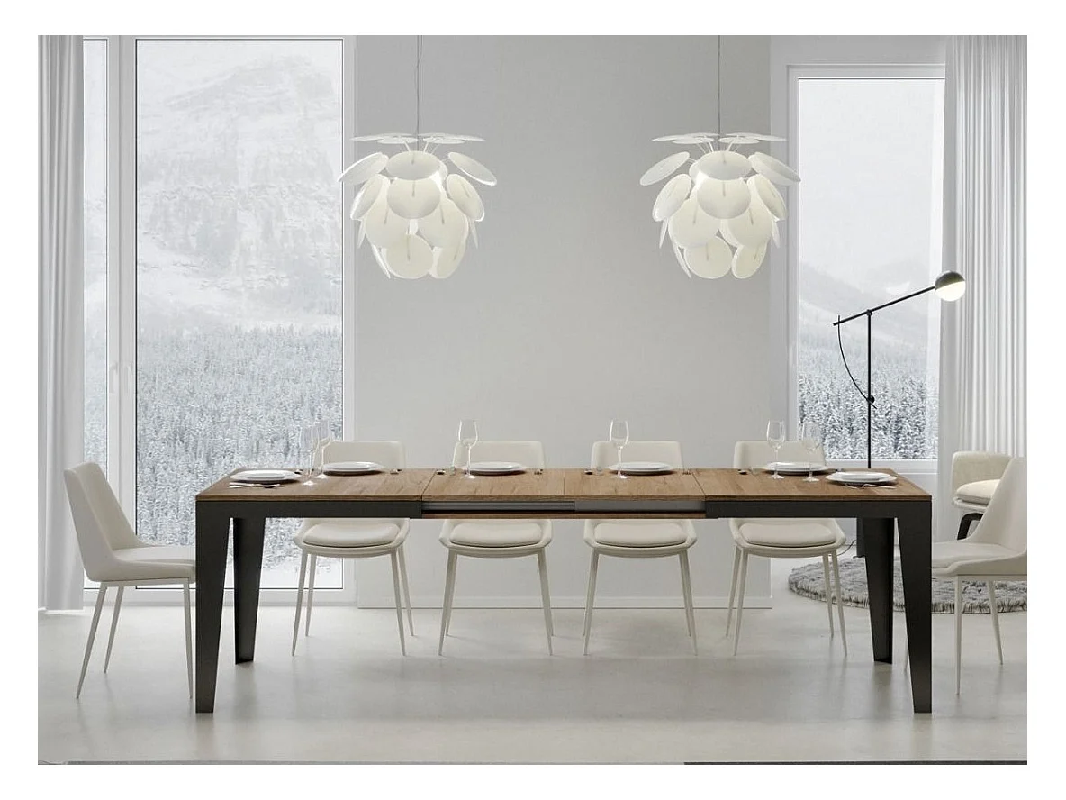 Mesa de comedor extensible evolución Flavio-Color Natural-Ancho extensible