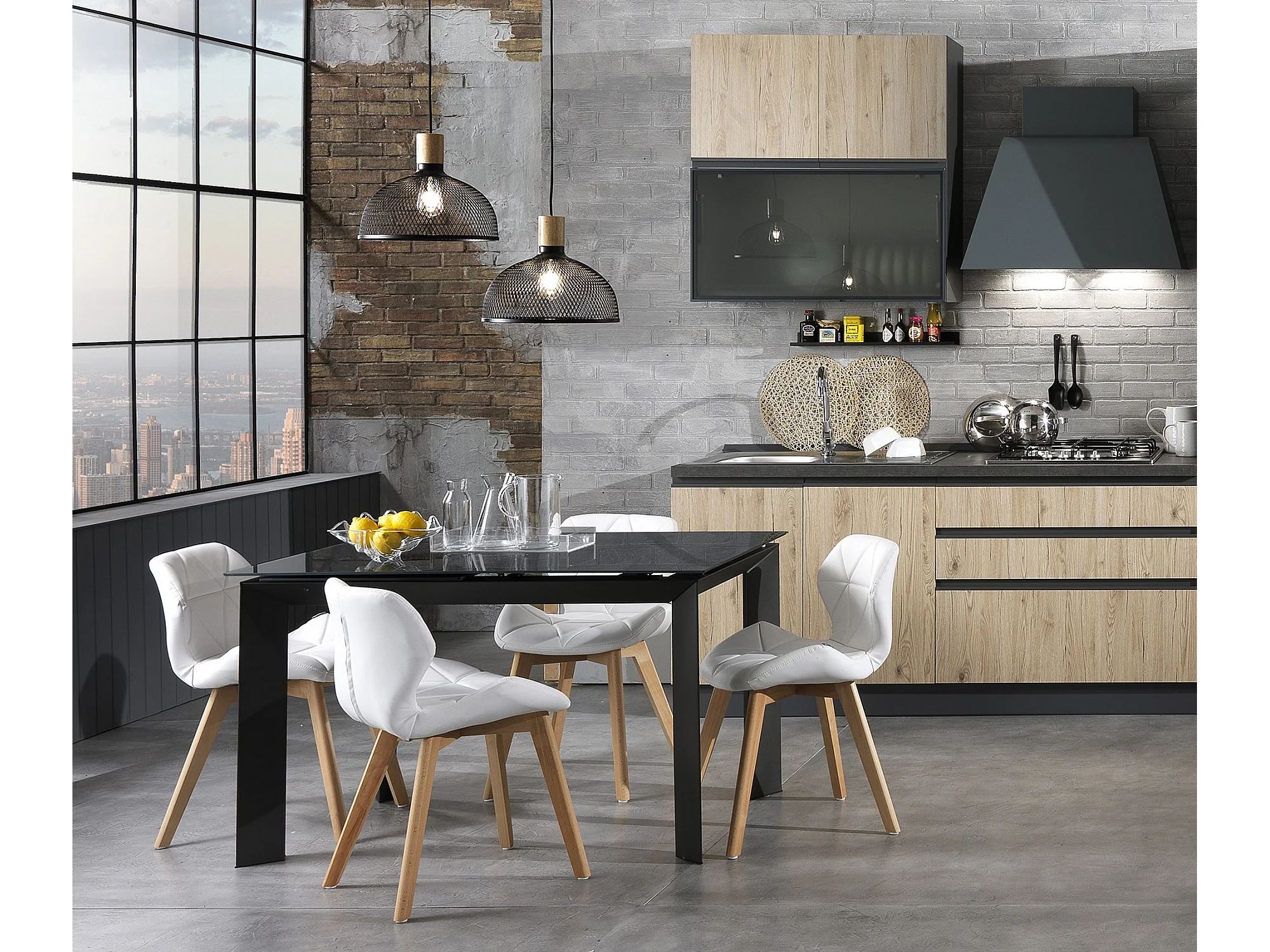 Mesa de comedor extensible con tablero de cristal gris oscuro y pata central de acero negro con diseño Chambord