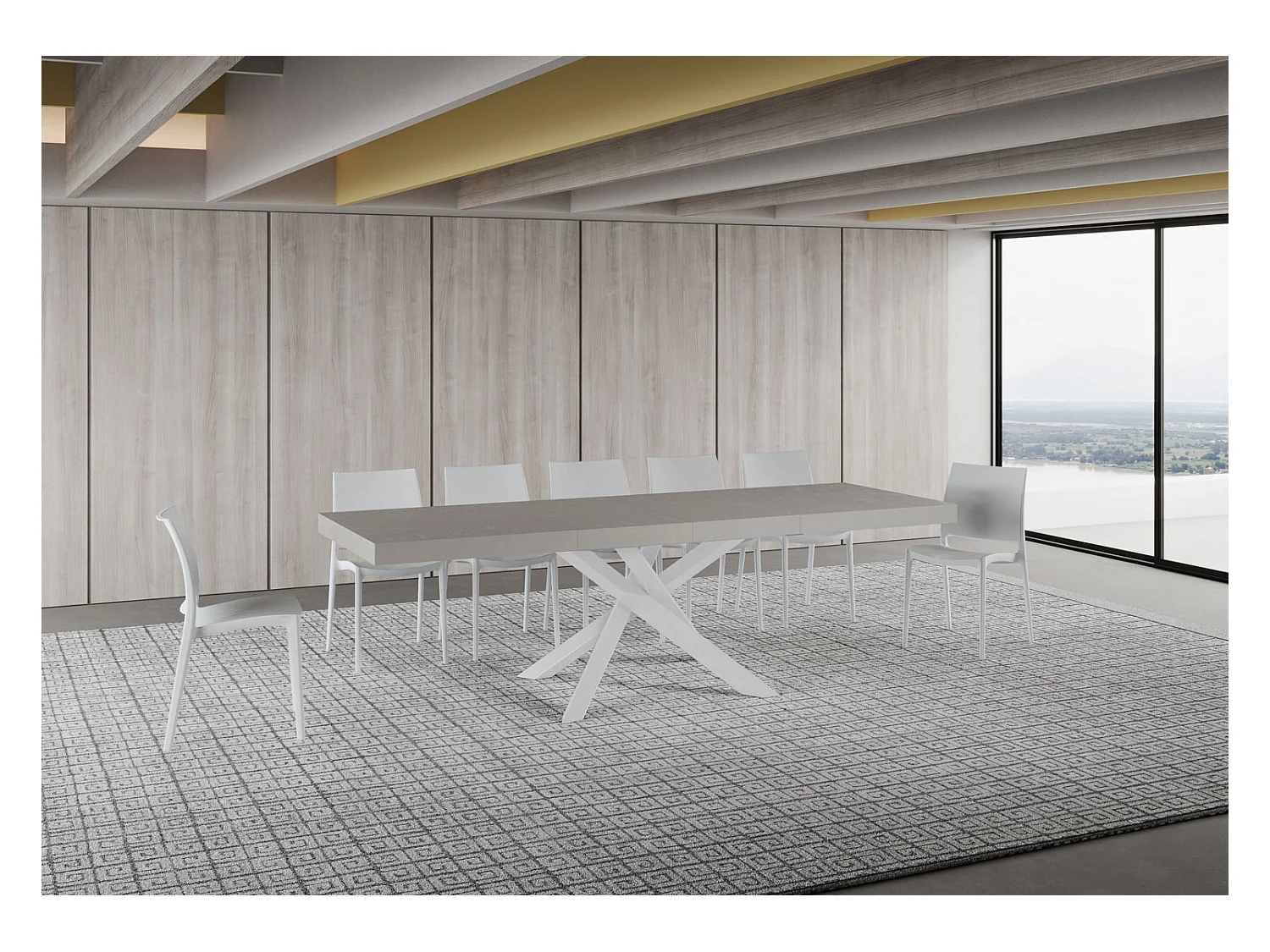 Mesa extensible de diseño con patas entrelazadas antracita Klass-Color Gris cemento-Ancho extensible
