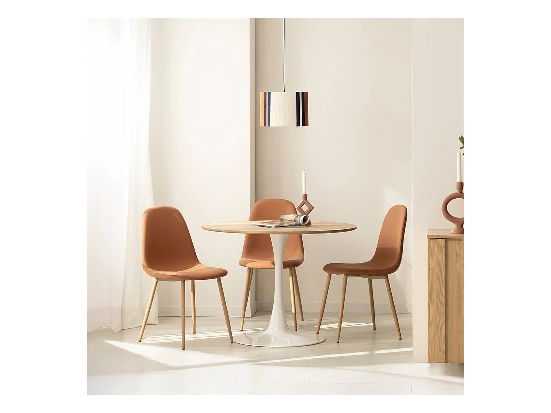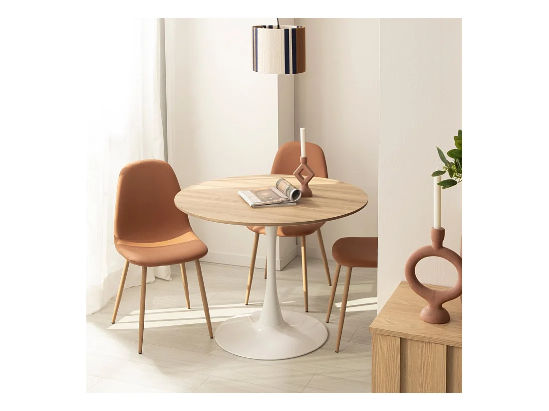 Mesa de comedor redonda efecto madera con patas de metal negro, 4