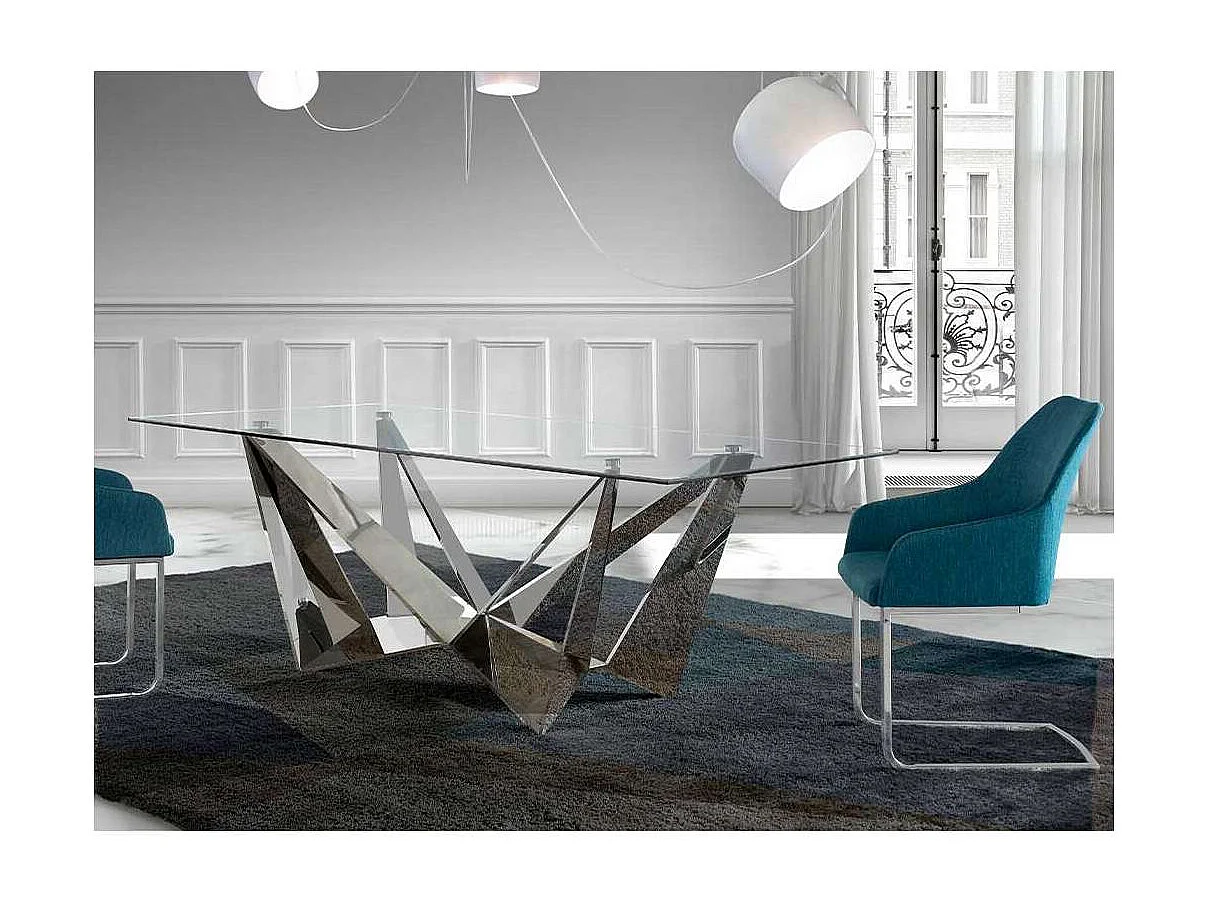 Mesa fija rectangular de vidrio templado Amparo, 220 x 100 x 77 cm (ancho x ancho x alto)