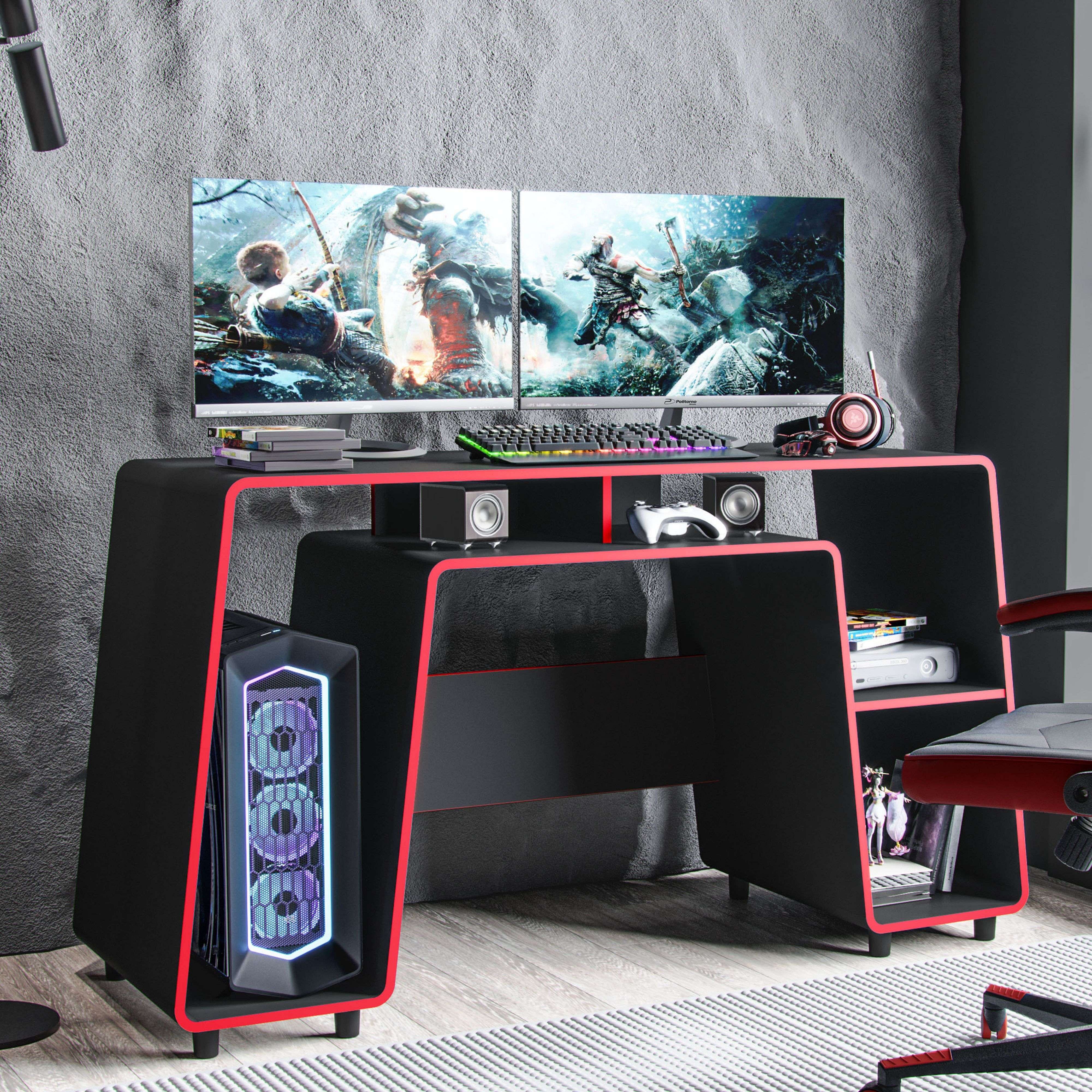 Mesa Gamer London Negro/Rojo - 1 Estante, Espacio Torre, Melamina, 150,5 cm