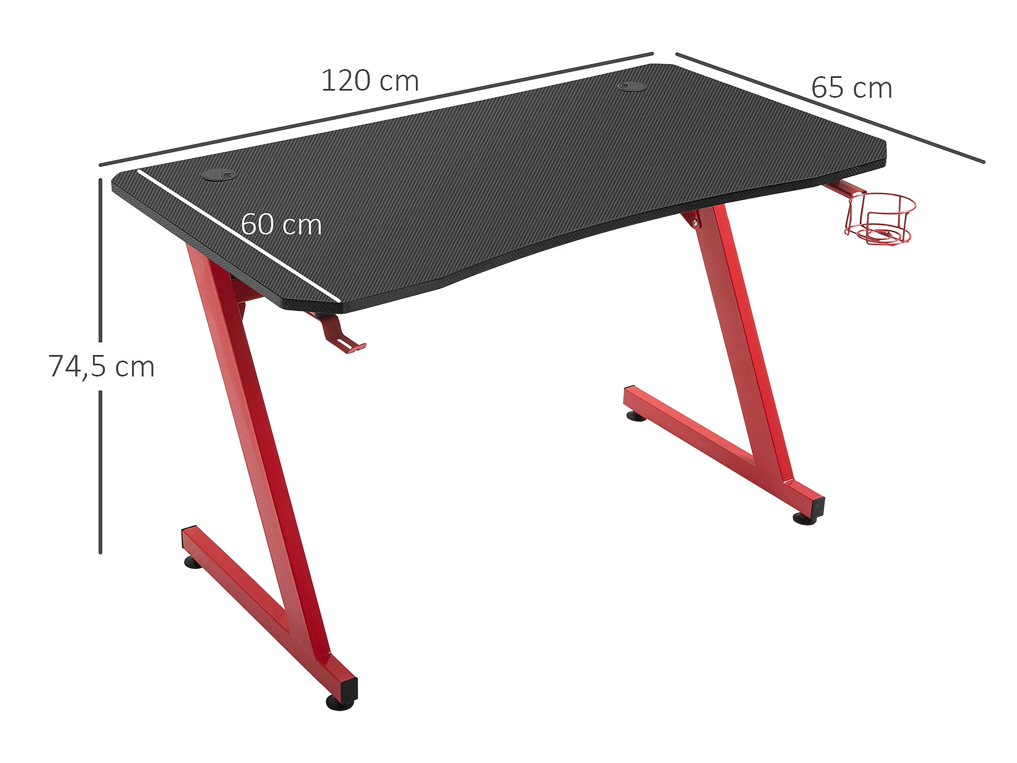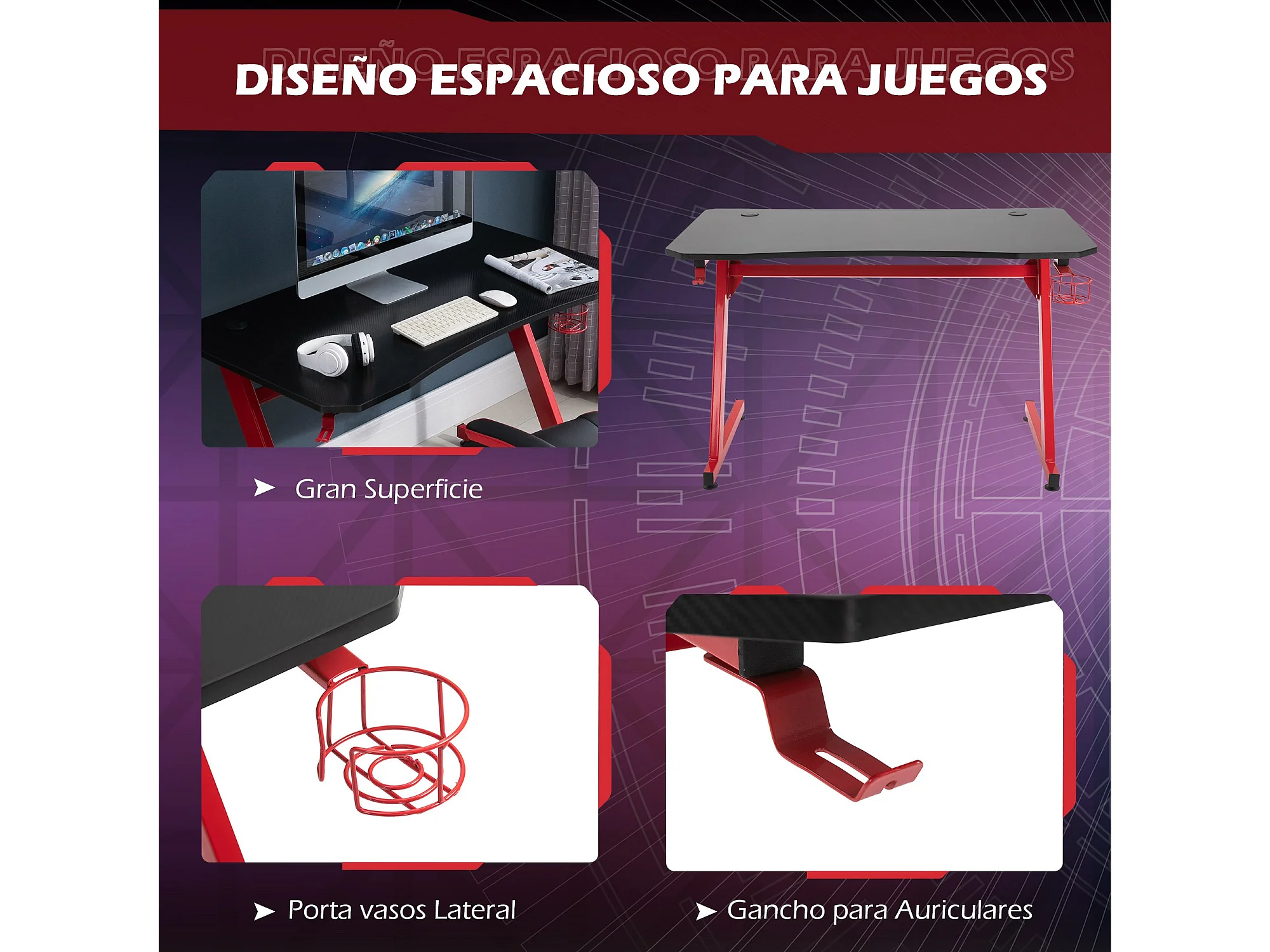 Mesa gaming rojo 120x65x74.5 cm HOMCOM
