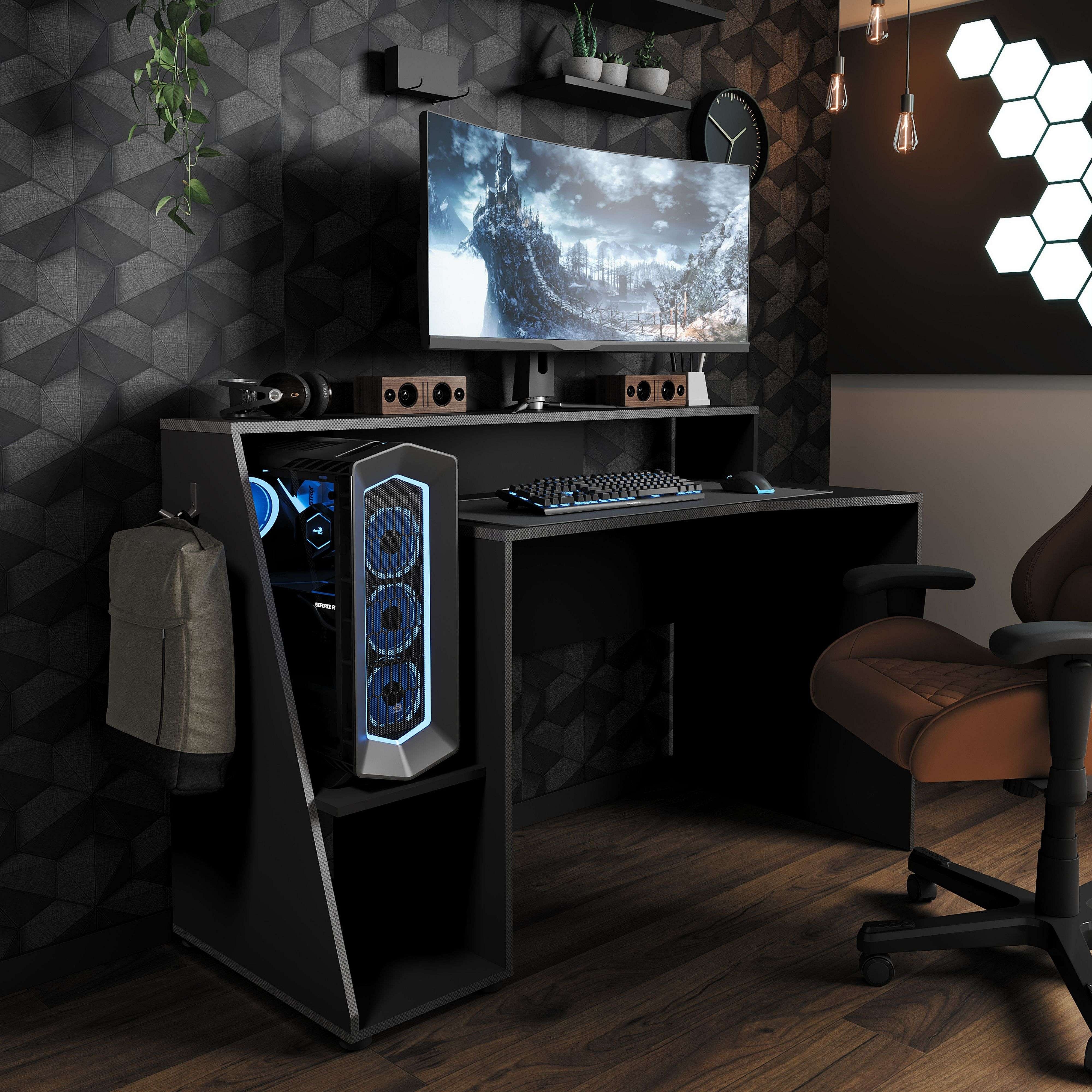 Escritorio con estantes, diseño moderno, madera contrachapada, blanco (120x55x120cm)