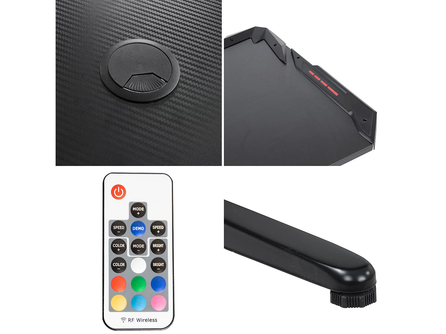 Escritorio Gaming LED Negro con Amplia Zona de Juego - L 152 x A 61,5 x H 86,7 cm
