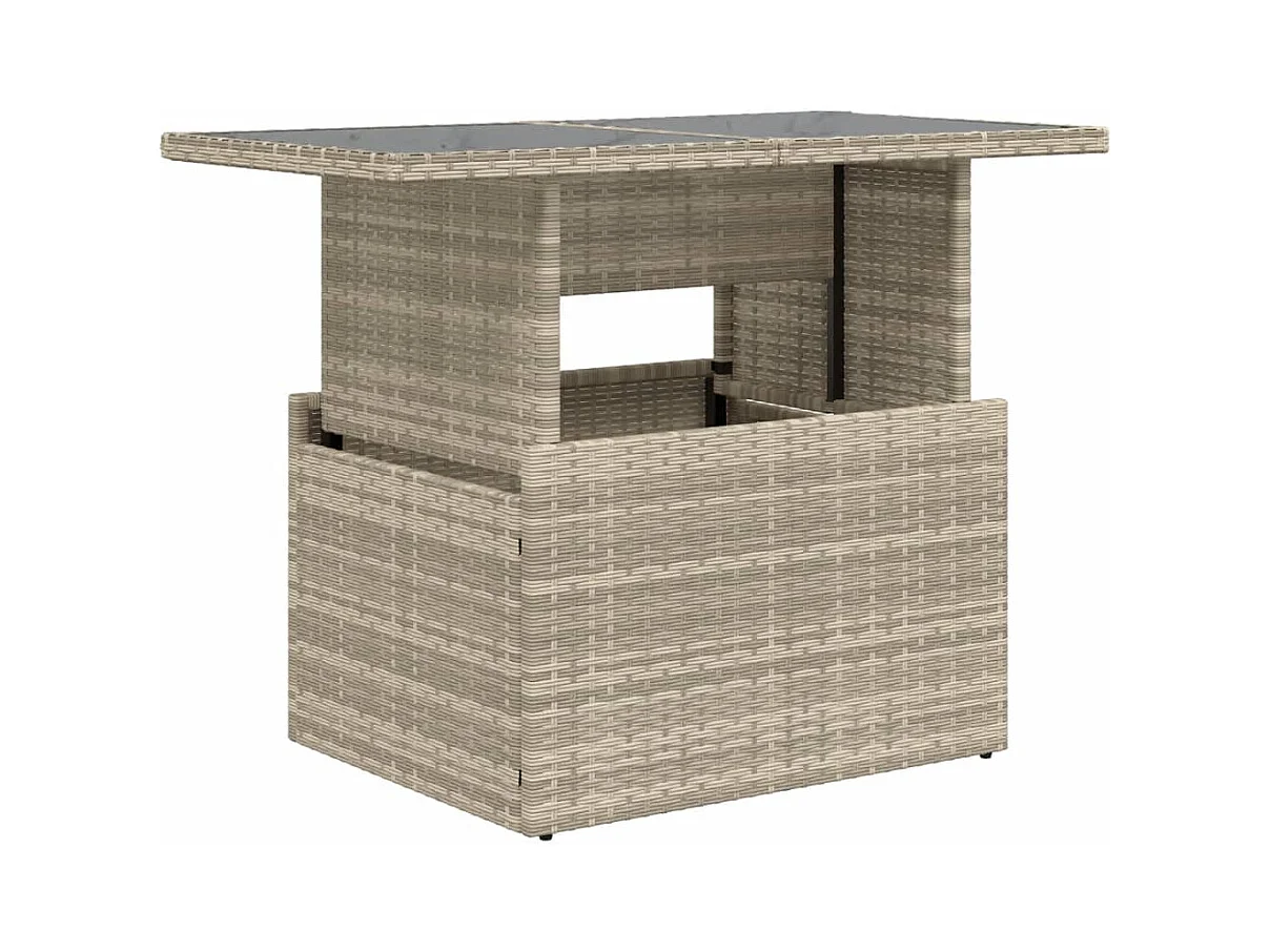 Mesa jardín superficie vidrio ratán PE gris claro 110x68x70 cm