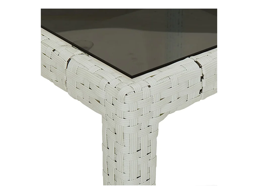 Mesa de jardín superficie de vidrio ratán PE blanco 80x80x75 cm