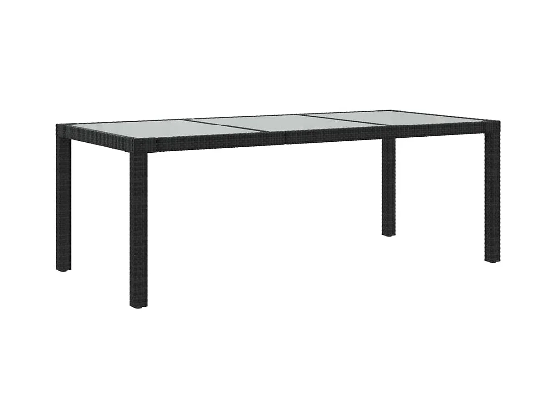 Mesa jardín vidrio templado ratán sintético negra 190x90x75 cm