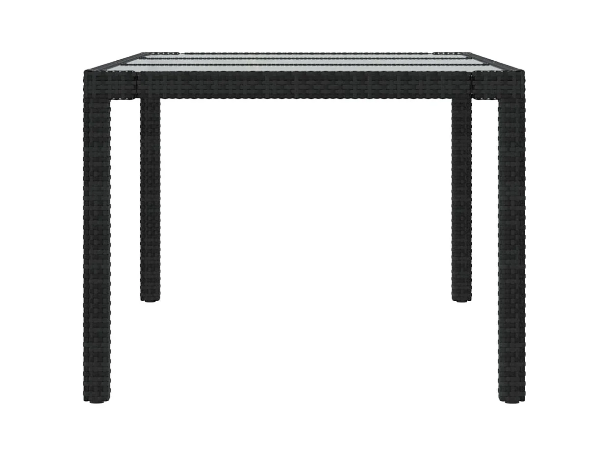 Mesa de jardín superficie de vidrio ratán PE negro 90x90x75 cm