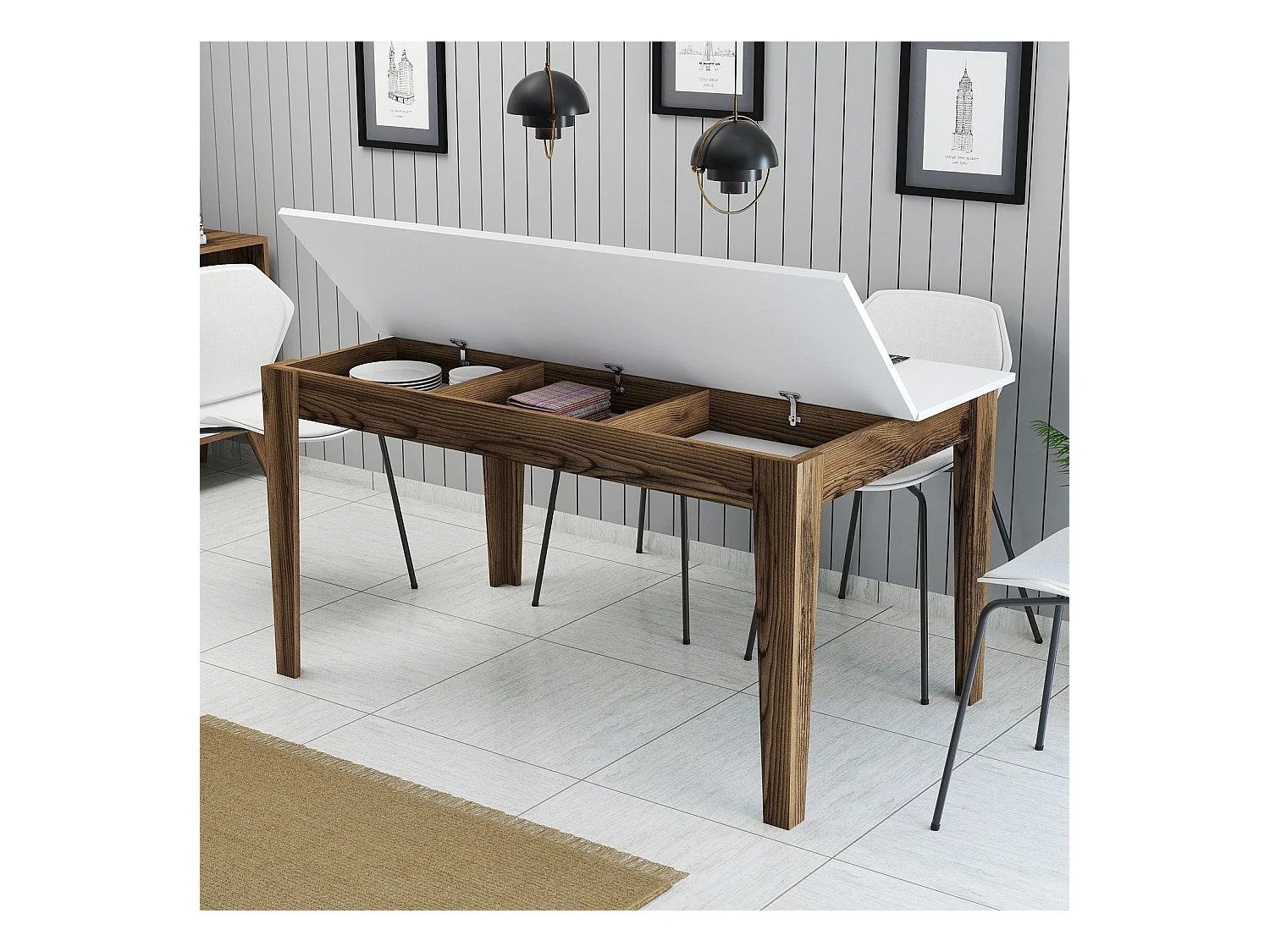 Mesa Kailua B100, Blanco|Nuez, 75x88x145cm, Aglomerado laminado